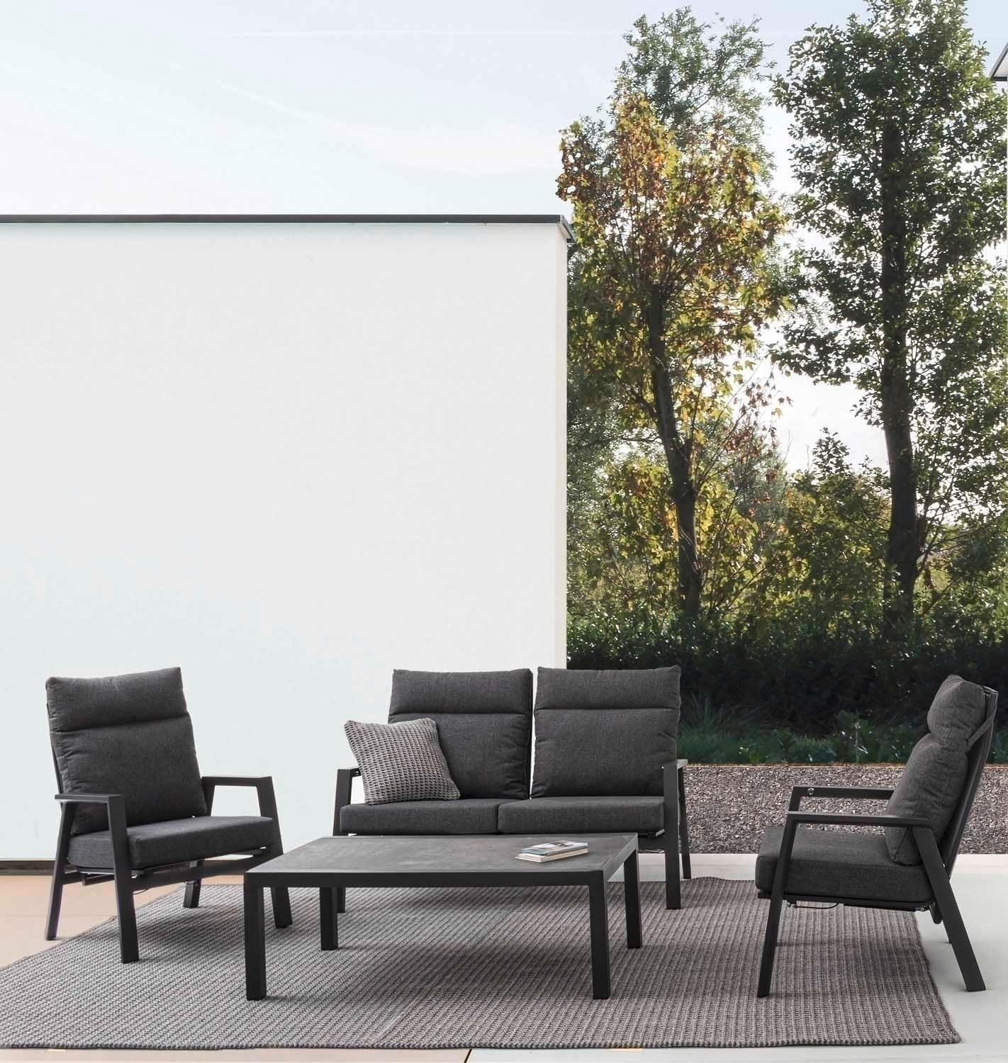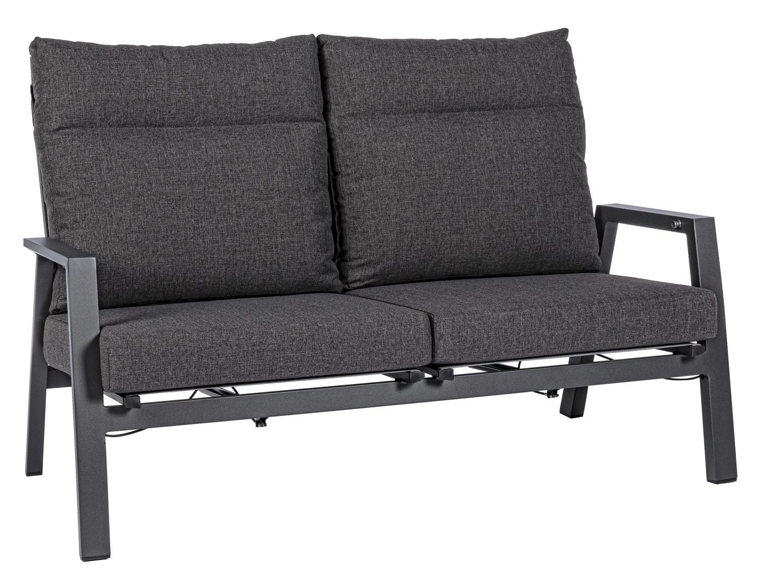 Die Gartenbank KLEDI der Marke Bizzotto besteht aus Aluminium in Anthrazit. Die Sitz- und Rückenbespannung ist aus Textilen gefertigt. Die Auflagen sind mit einem Bezug aus Polypropylen in Anthrazit versehen und verfügen über praktische Gurte an den Rückenteilen. Die Rückenlehnen sind separat 7-fach verstellbar. Die Maße der Bank betragen 152 cm Breite, 98 cm Höhe und 81 cm Tiefe.