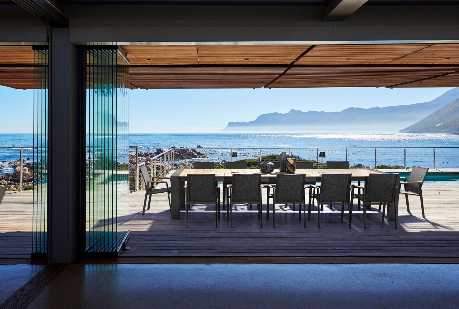 Die Sitz- und Rückenlehnenbespannung bestehen aus Textilen. Textilen ist ein mit PVC umwickeltes Polyestergewebe. Textilen zeichnet sich durch absolute Wetterfestigkeit, hohe UV-Beständigkeit, Farbbeständigkeit sowie Reißfestigkeit aus und ist darüber hinaus schnell trocknend. Das Gestell aus Aluminium verbindet sehr geringes Gewicht mit Langlebigkeit, hoher Resistenz gegen Witterungseinflüsse und ist zudem leicht zu handhaben. Das rostfreie Aluminium erhält durch hochwertige Pulverbeschichtung ein edles Oberflächenfinish, welches es unempfindlich gegen Witterungseinflüsse und pflegeleicht macht.