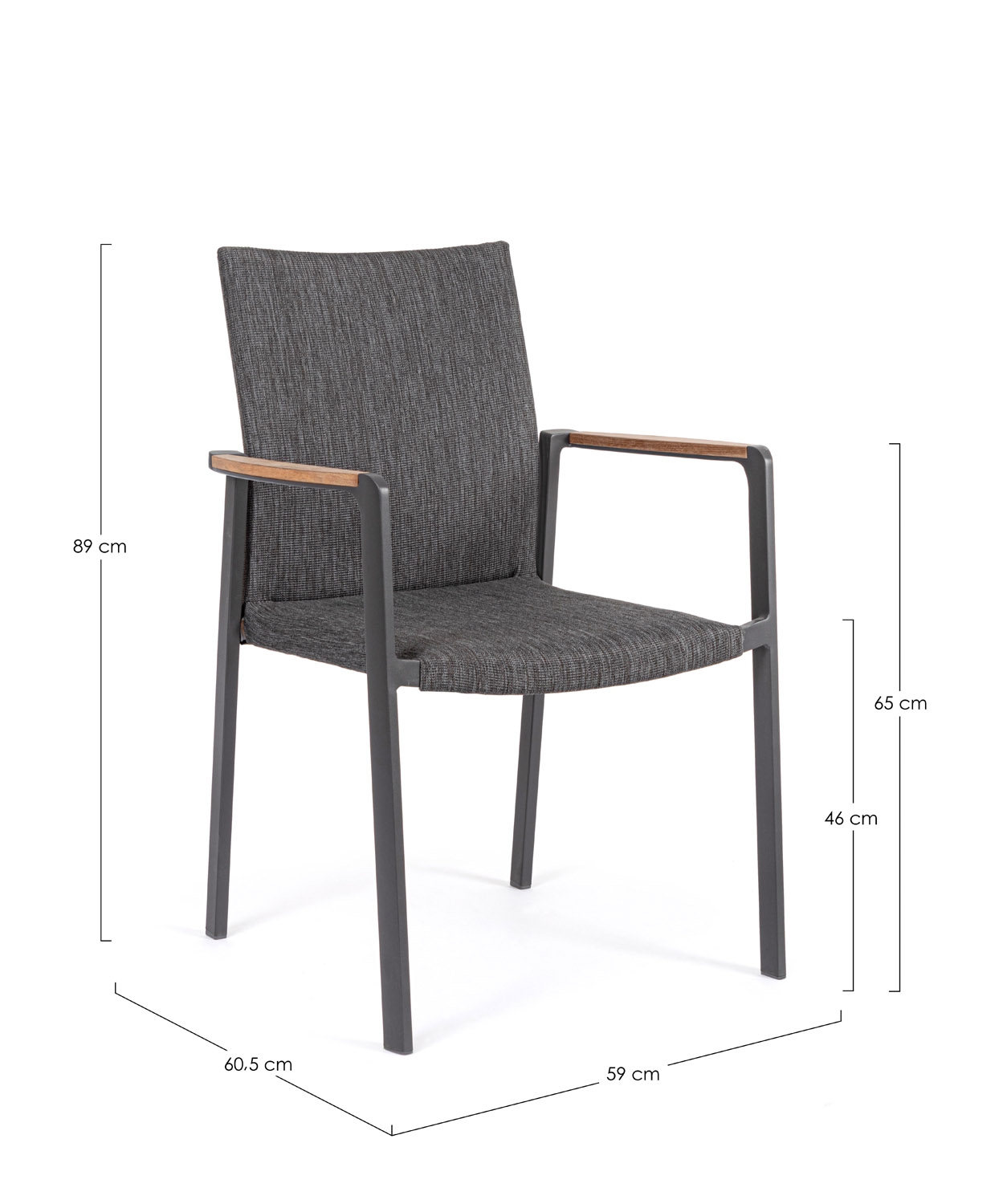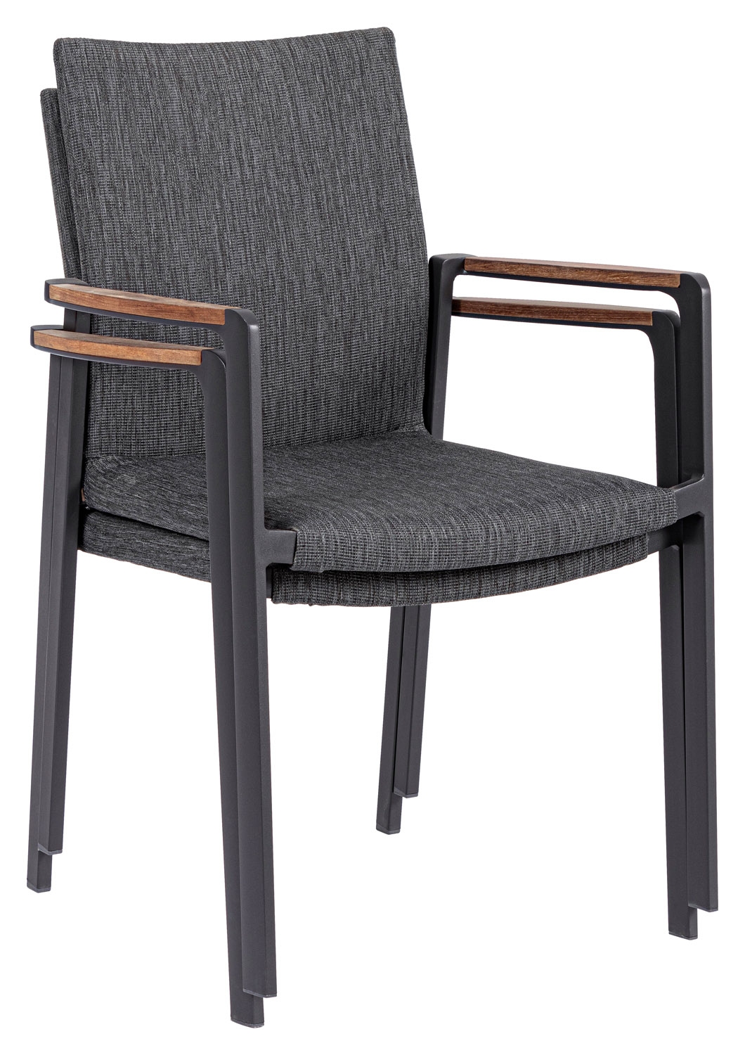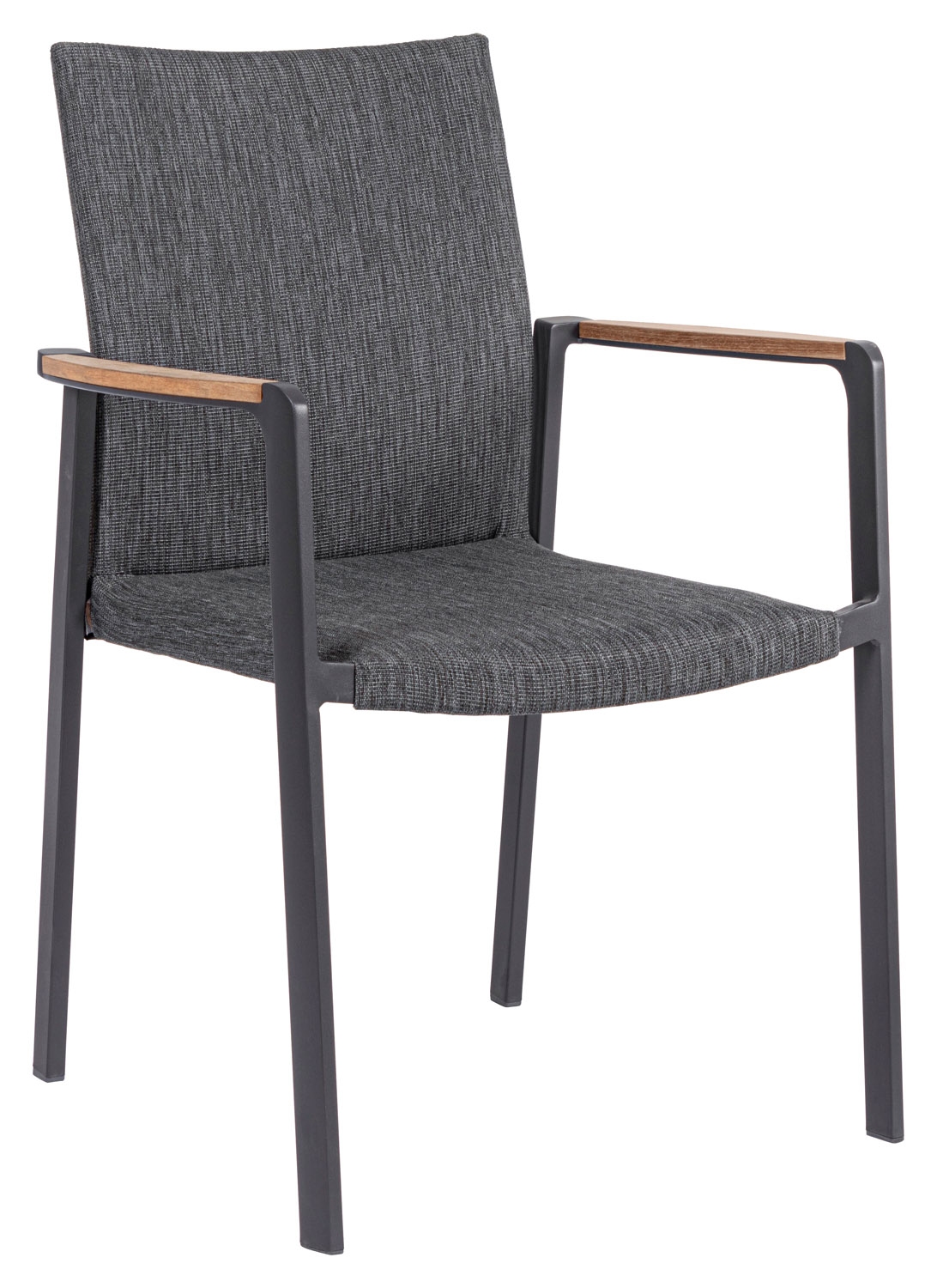 Anthrazit - Textilgewebe - Aluminiumrahmen - Teakholz - stapelbar