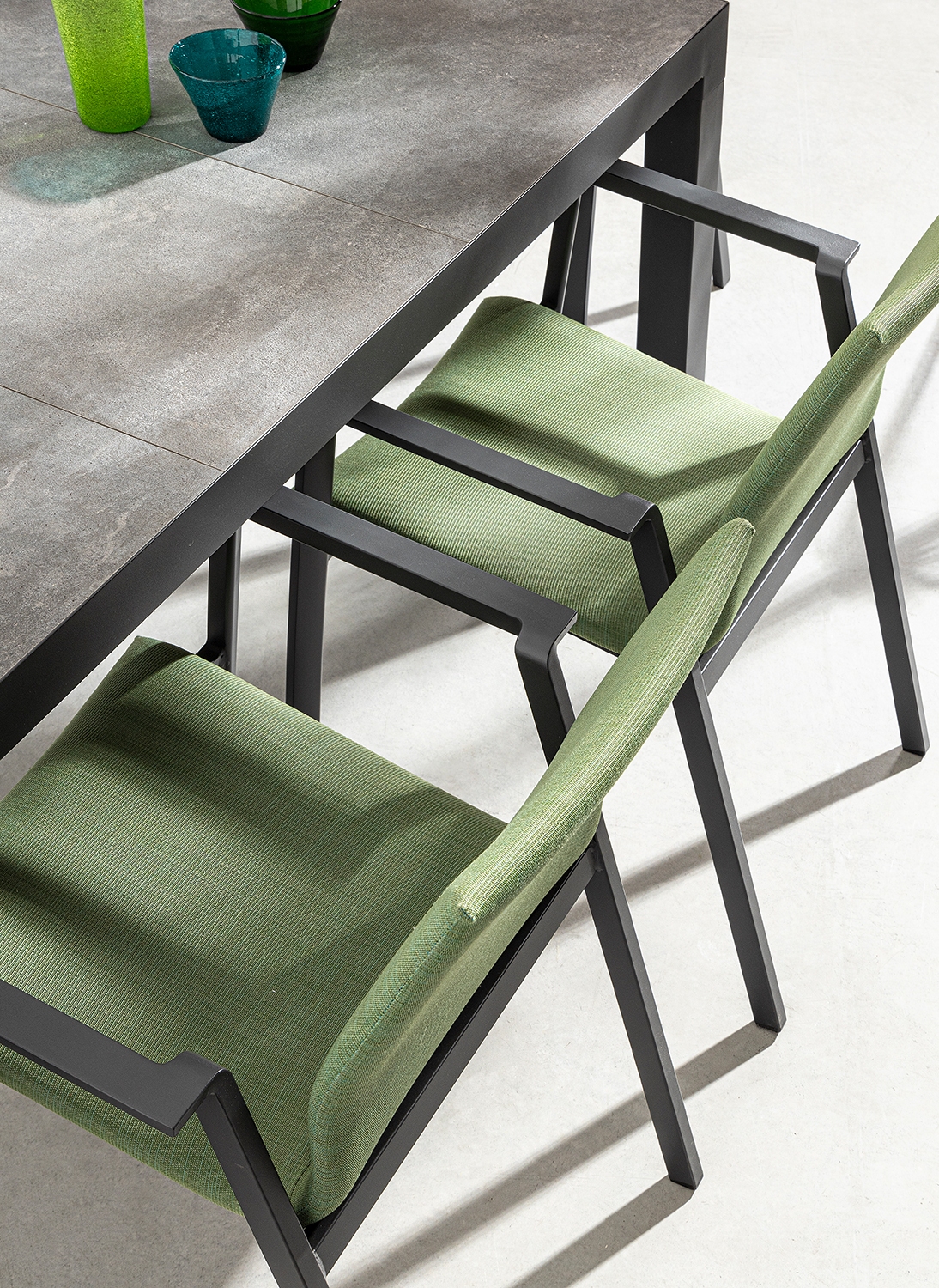 Olivgrün - Anthrazit - Textilen - Aluminiumrahmen - stapelbar