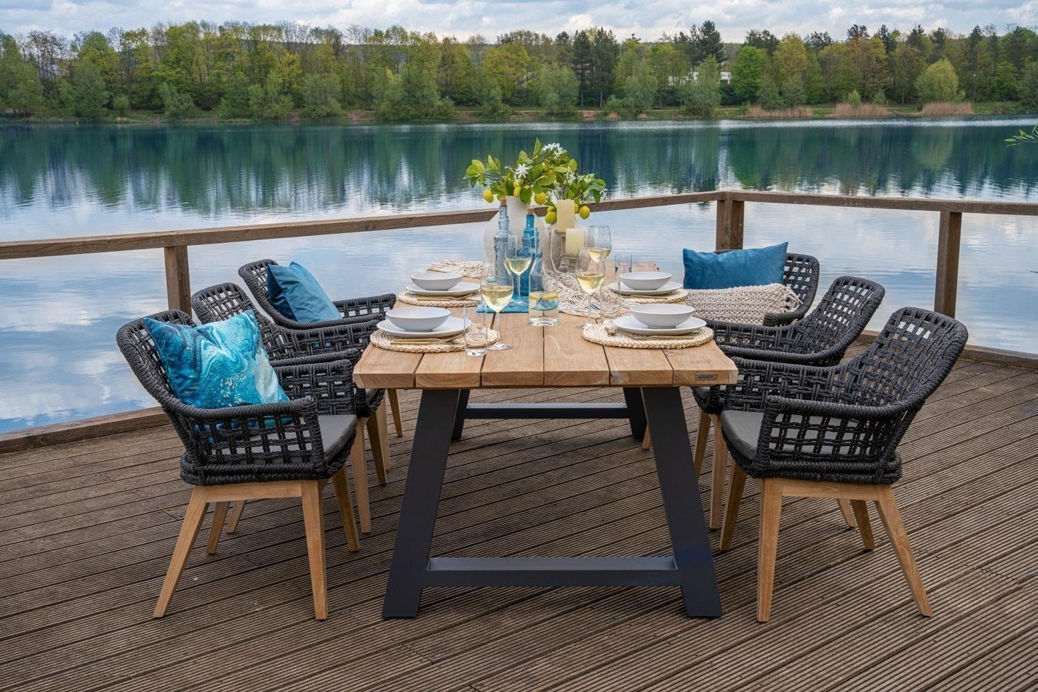 240 x 100 cm - Anthrazit - Braun - Aluminiumgestell - Teakholz massiv