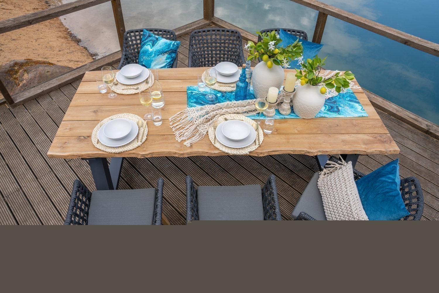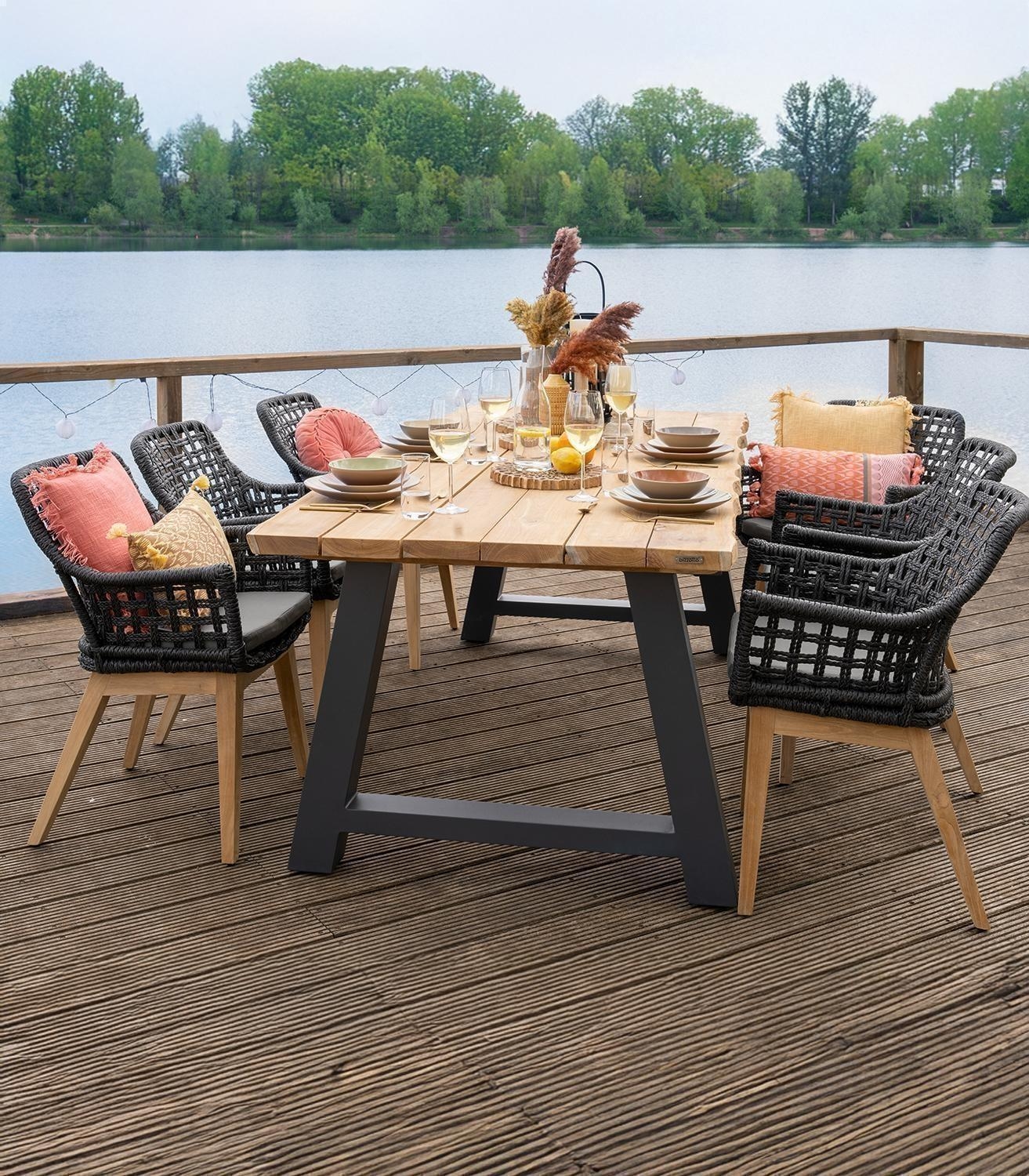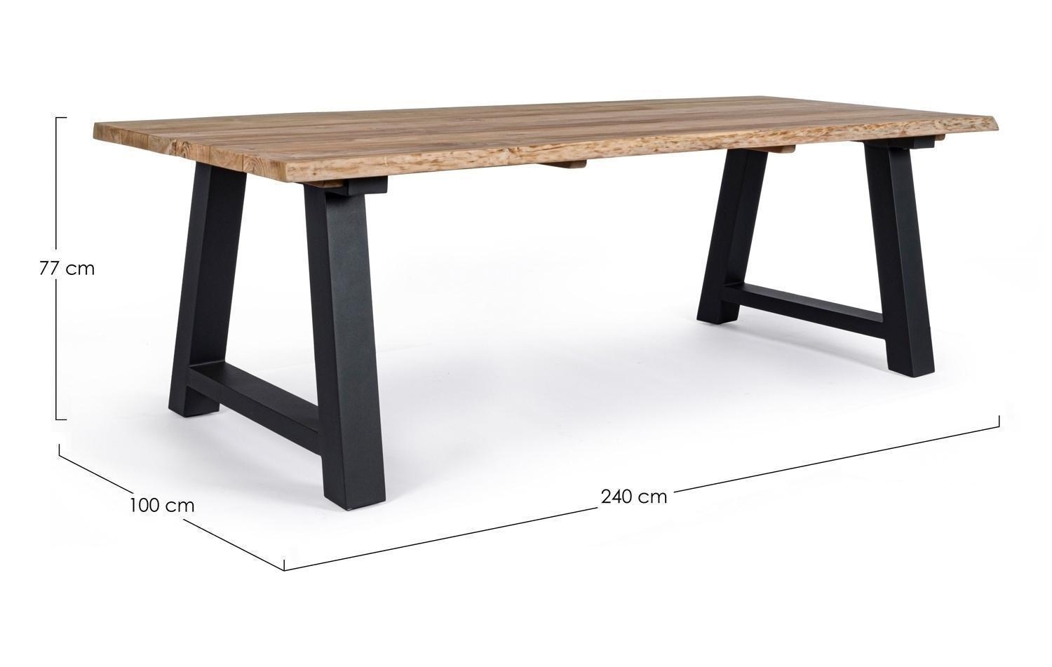 Der Gartentisch ROLAND der Marke Bizzotto verfügt über eine Tischplatte aus massivem Teakholz in Braun. Das Gestell besteht aus pulverbeschichtetem Aluminium. Die Tischplatte ist mit einer beidseitigen Baumkante versehen. Der Tisch bietet Platz für 6 bis 8 Personen. Die Maße betragen 240 cm Breite, 77 cm Höhe und 100 cm Tiefe.