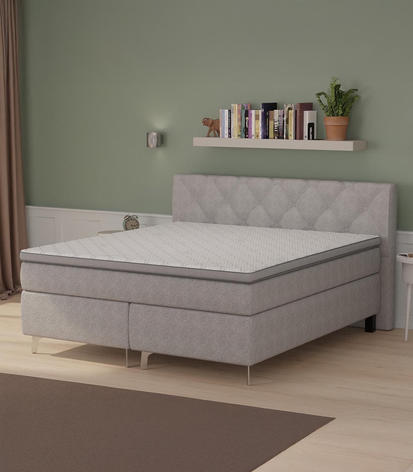 - Boxspringbett mit Stoffbezug in Silbergrau