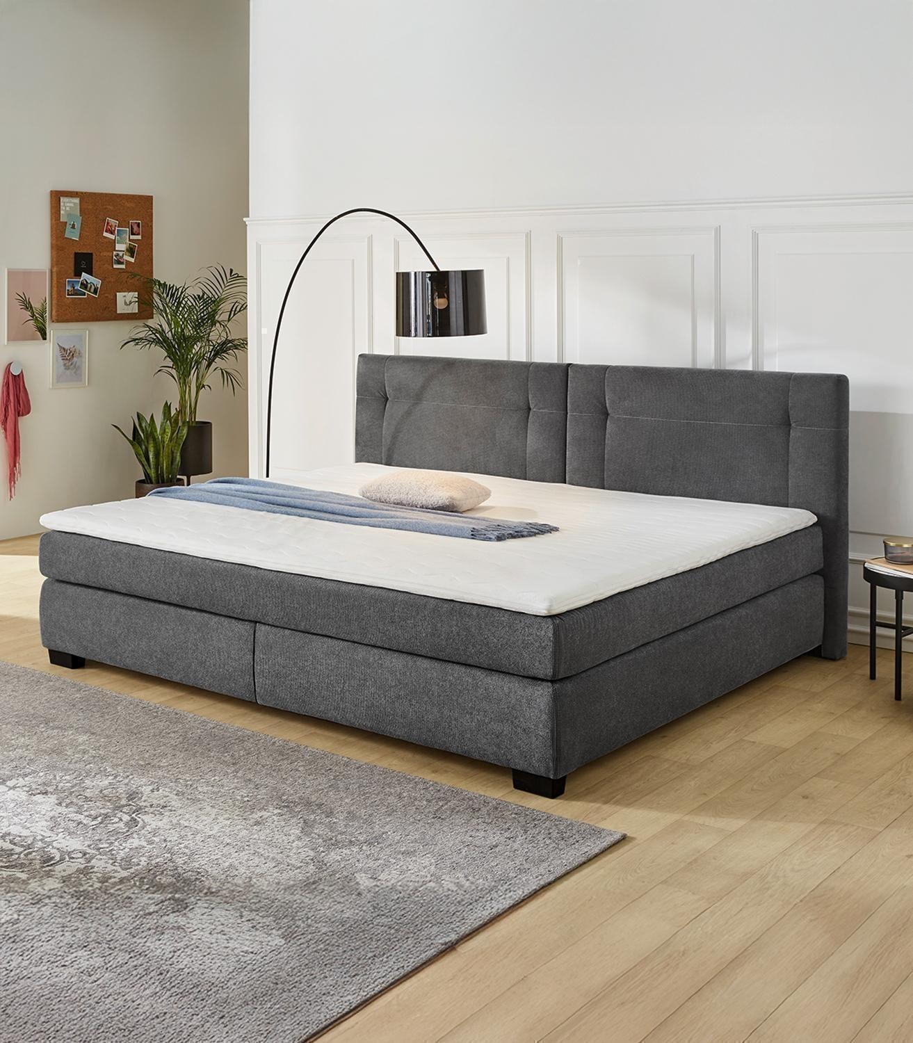 - XXL Boxspringbett mit Mikrofaserbezug in Dunkelgrau