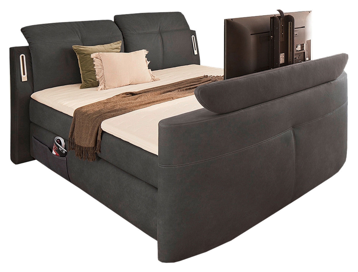 Dunkelgrau - Mikrofaser - 180 x 200 cm - elektrisch ausfahrbare TV-Halterung