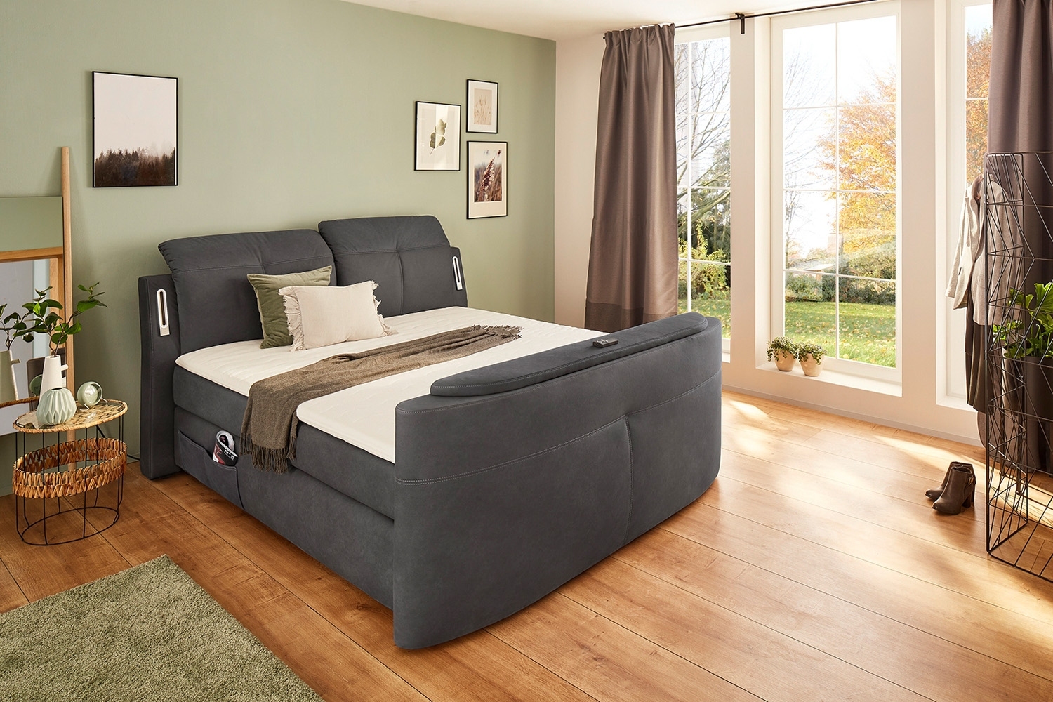 - Boxspringbett mit Mikrofaserbezug in dunkelgrau