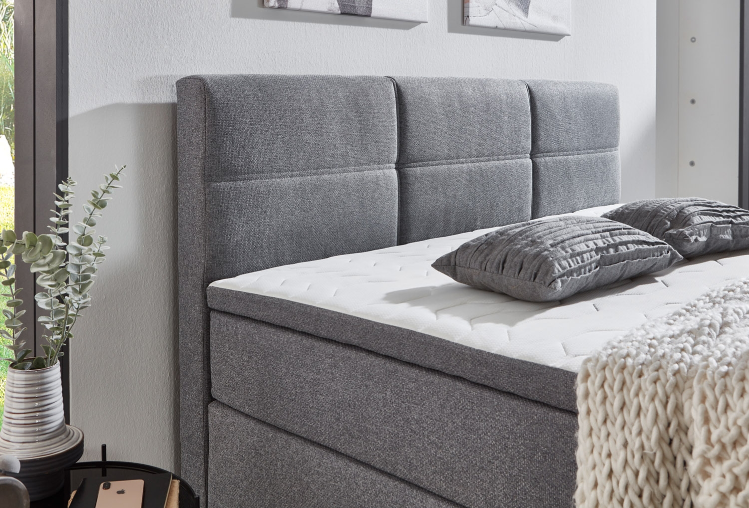 - Boxspringbett 180 x 200 cm mit Webstoffbezug in grau