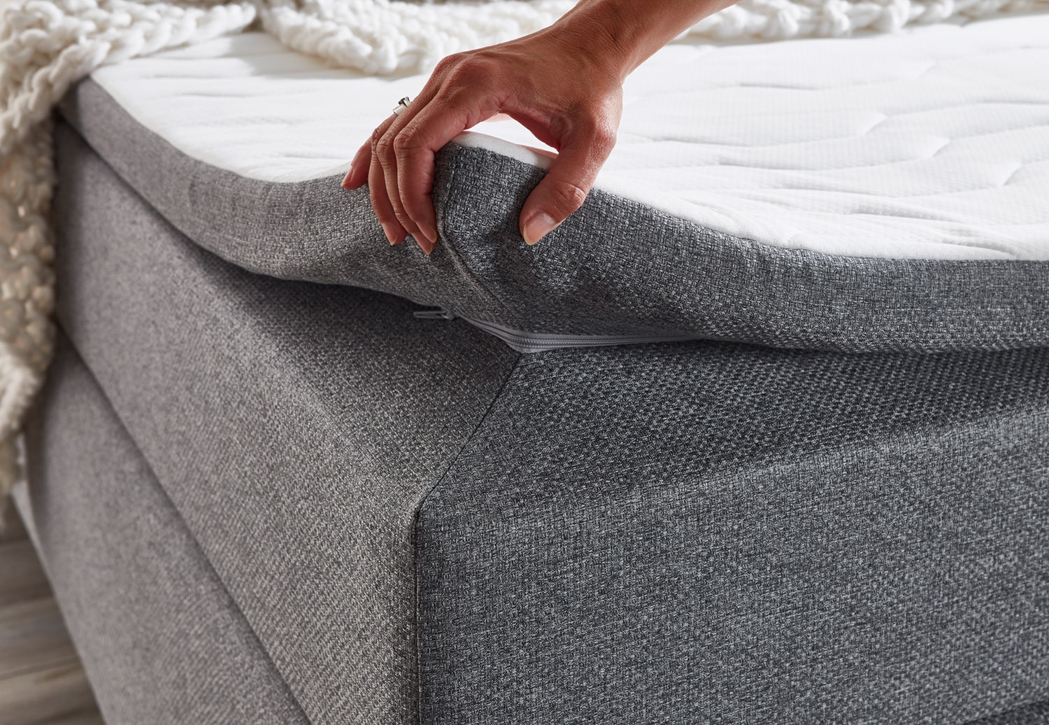 180 x 200 cm - Braun - Grau - Webstoffbezug - Holzdekorfüße - mit Topper