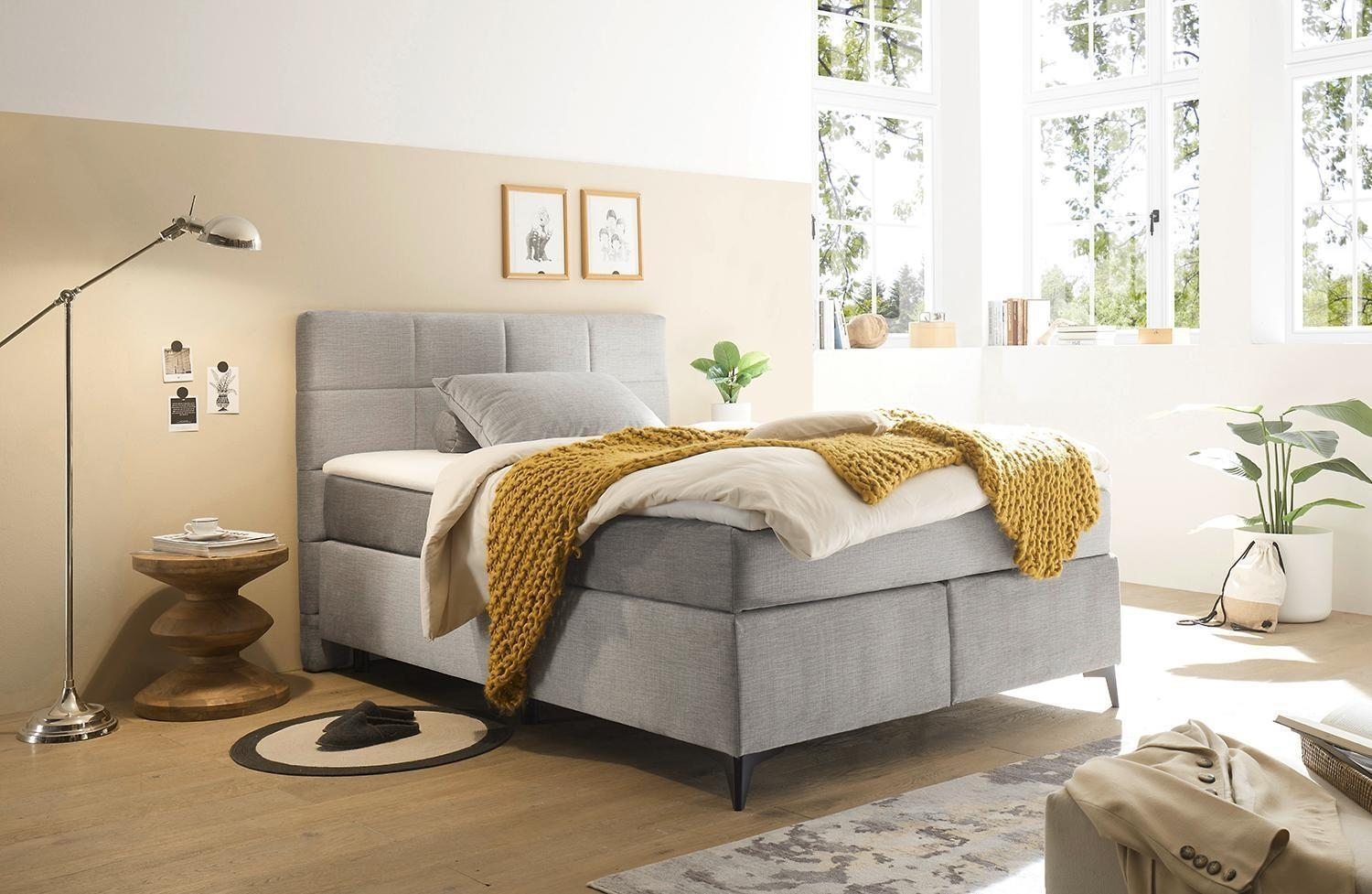 - Boxspringbett mit Polyesterbezug in Silbergrau