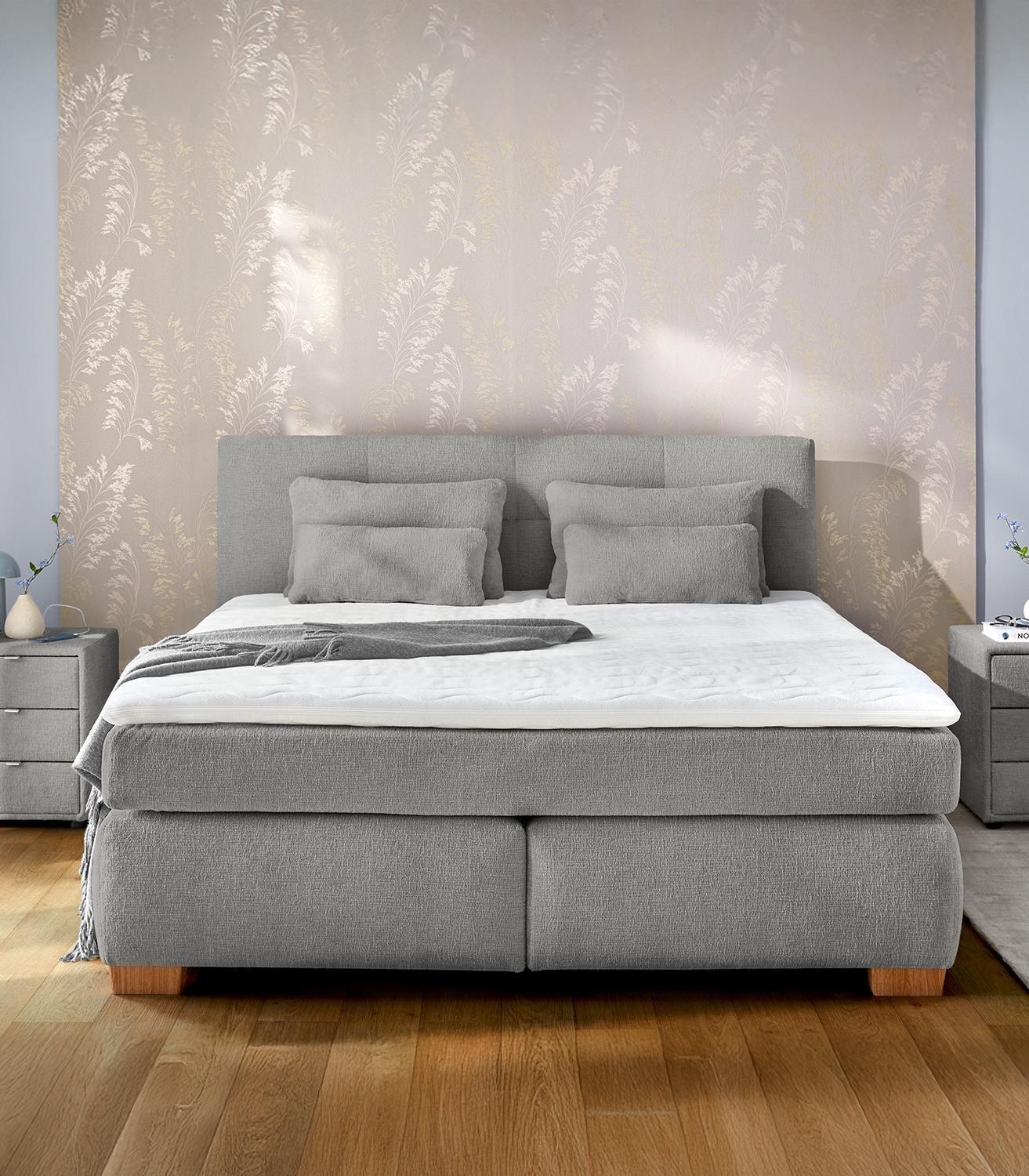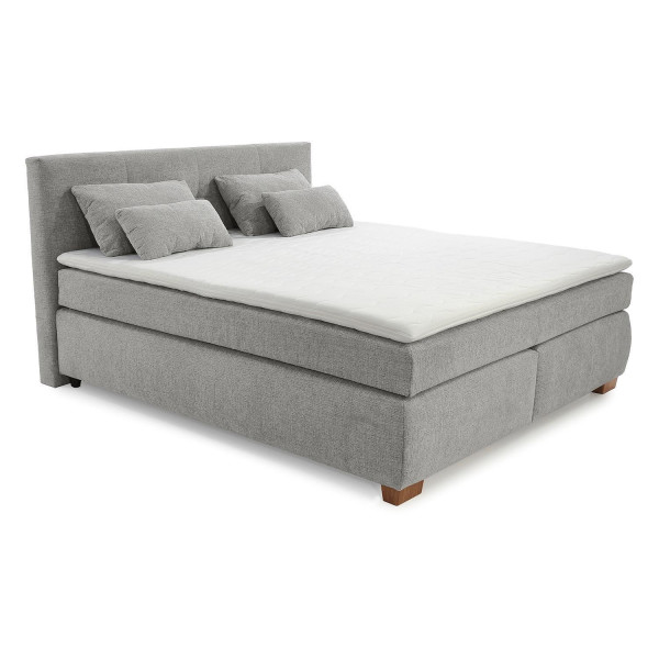 - Boxspringbett mit Chenillebezug in Hellgrau