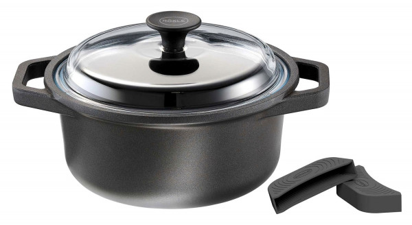 • Bratentopf aus Aluminiumguss mit Glasdeckel