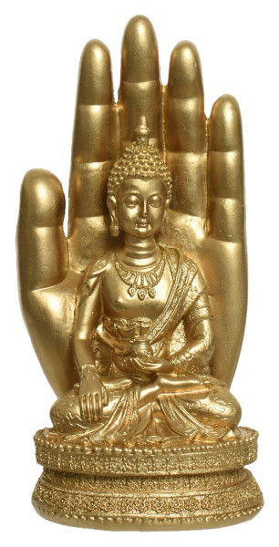 Der Buddha RECENT strahlt mit seiner goldenen Farbe Ruhe und Gelassenheit aus. Aus Polyresin gefertigt, ist er sowohl für den Innen- als auch für den Außenbereich geeignet. Seine kompakte Größe von 9 cm Breite, 19 cm Höhe und 8 cm Tiefe macht ihn zu einem vielseitigen Dekorationsstück, das in jedem Raum oder Garten harmoniert. Die detailreiche Gestaltung und die friedvolle Ausstrahlung machen den Buddha RECENT zu einem inspirierenden Element für Zuhause oder Garten.