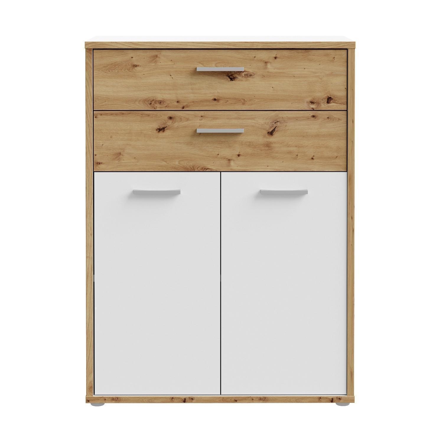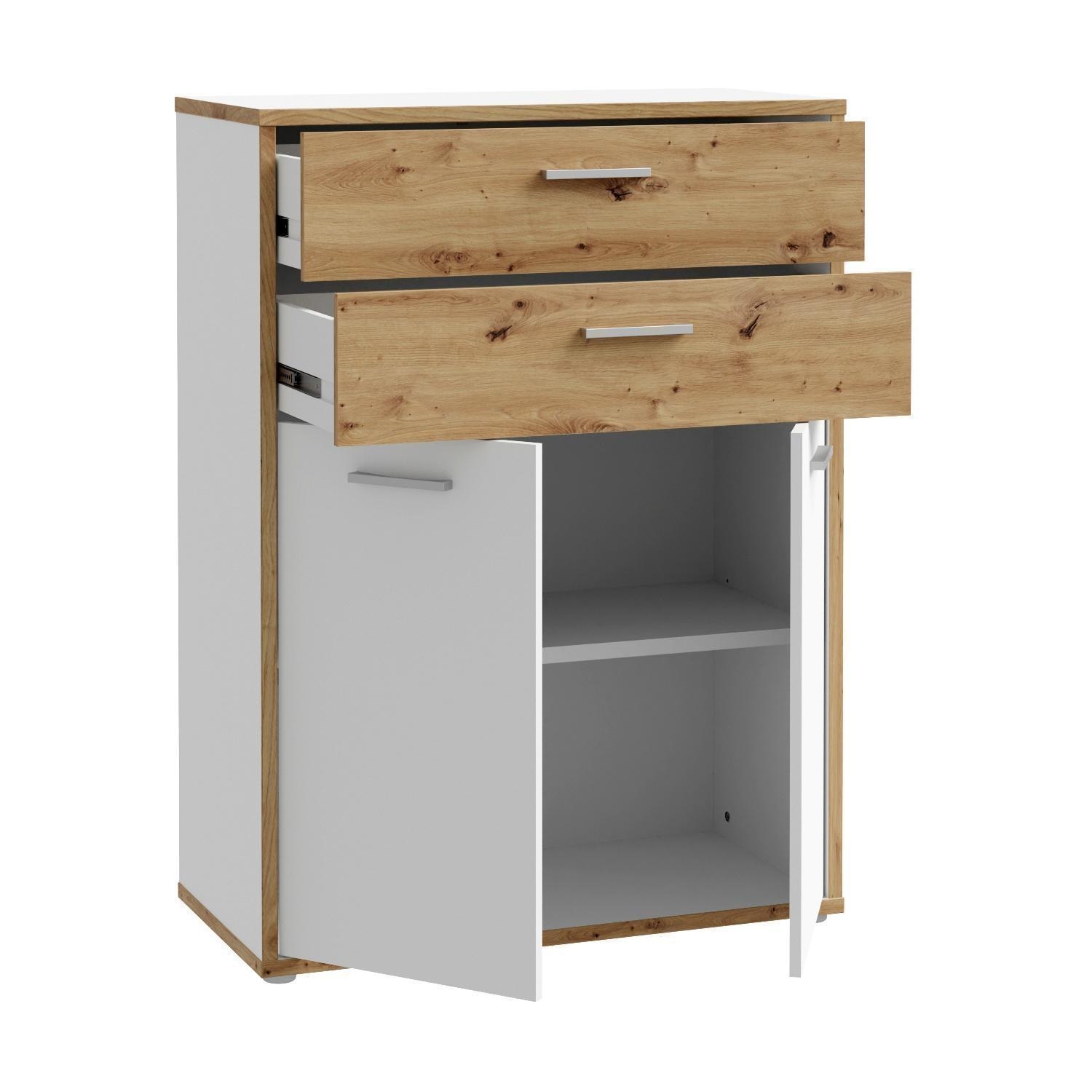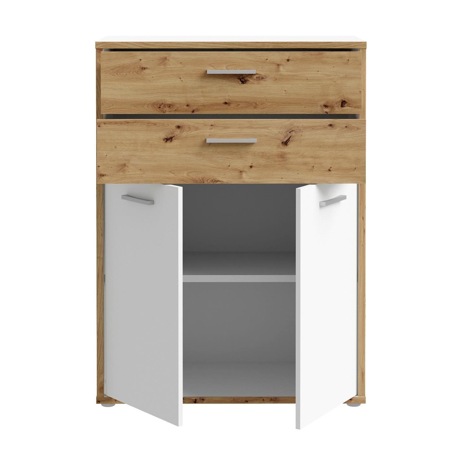 85 x 115 cm - 2 Türen - 2 Schubladen - Artisan Eiche Dekor - Weiß