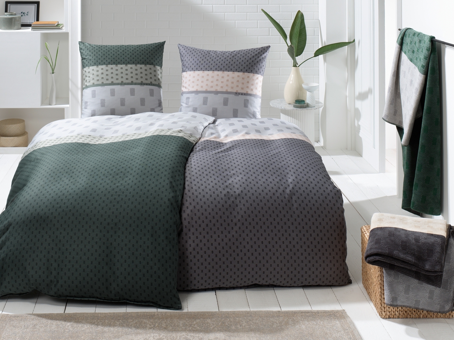 Die Wohndecke KOTA von Bugatti aus Mischgewebe präsentiert sich in den Maßen 150 x 200 cm. Die Decke ist Grün und Creme und mit schicken Mustern verziert. Diese Decke ist bei 30 °C waschbar und trocknergeeignet. Ein vielseitiges und pflegeleichtes Accessoire für gemütliche Stunden.