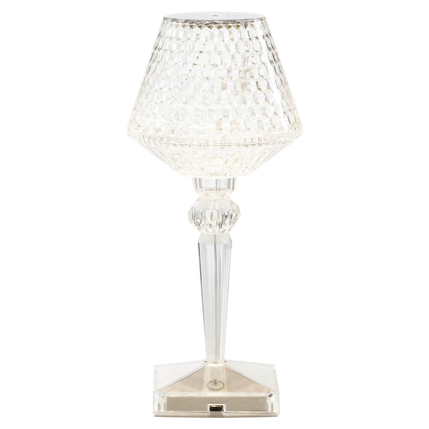 Die Akku-LED-Tischlampe CANDY der Marke casa NOVA besteht aus transparentem Kunststoff und verfügt über eine dimmbare Funktion mit Touchsensor. Die Farbtemperatur ist anpassbar im Bereich von 2700 bis 6500 Kelvin. Die Lampe wird mit einem USB-Kabel und einem wiederaufladbaren Akku geliefert. Mit einem Durchmesser von 12 cm und einer Höhe von 26 cm enthält sie ein fest verbautes LED-Leuchtmittel mit einer Leistung von 1,5 Watt und einer Lichtstärke von 50 Lumen, das nicht austauschbar ist.