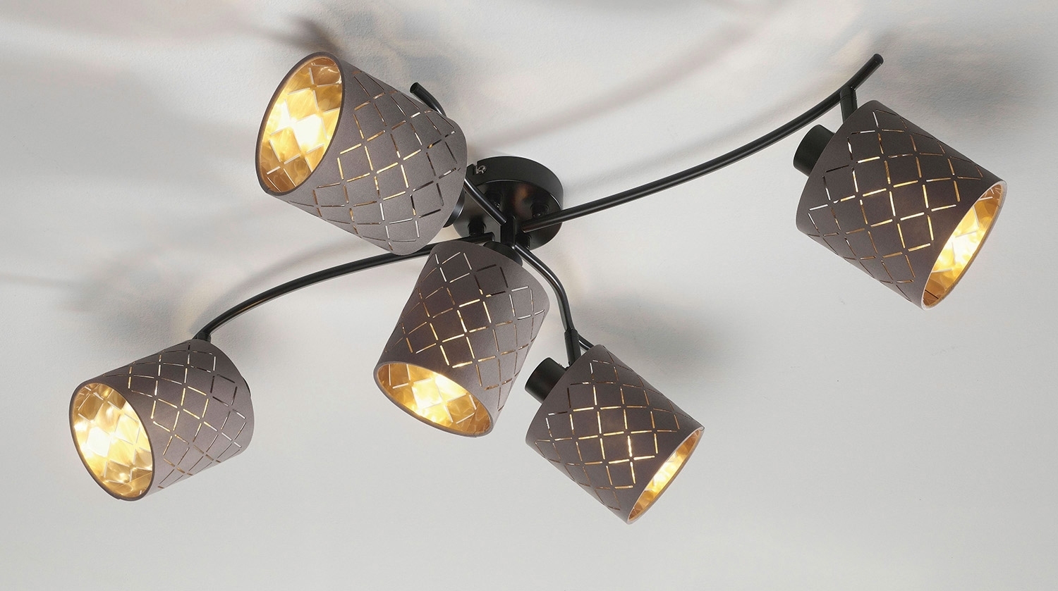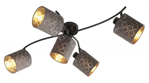 Schwarz - Braun - Metall - 5-flammig - B 90 cm
