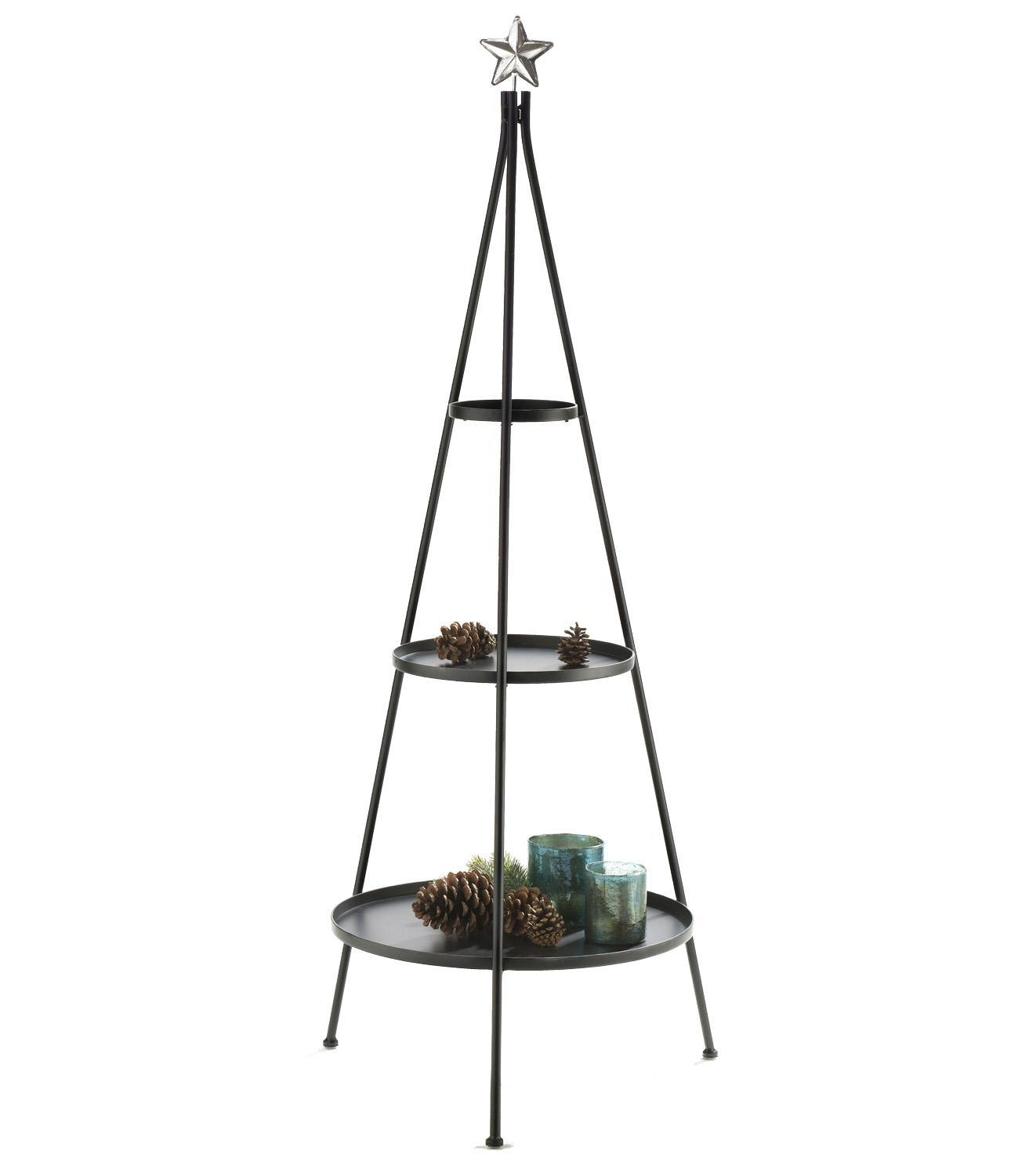 H 141 cm - Schwarz - Silbergrau - Metall - 3 Etagen - Kegelform