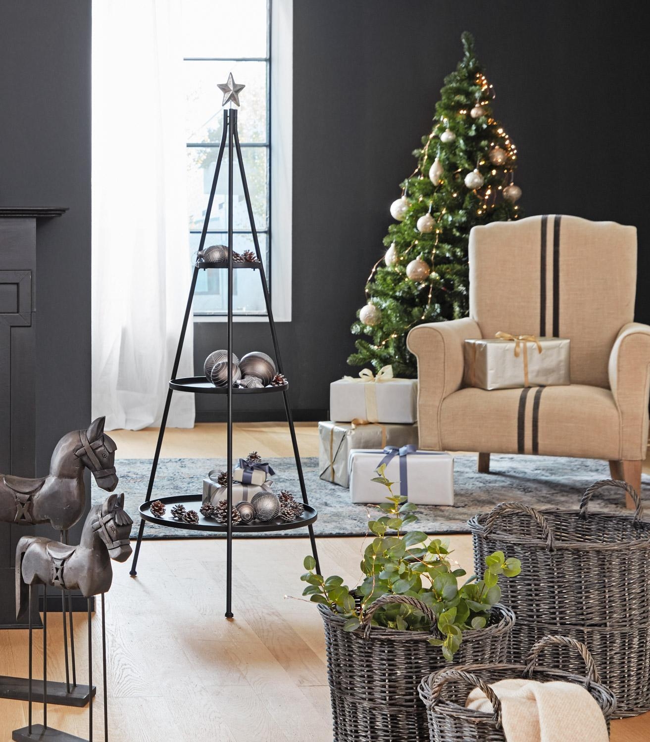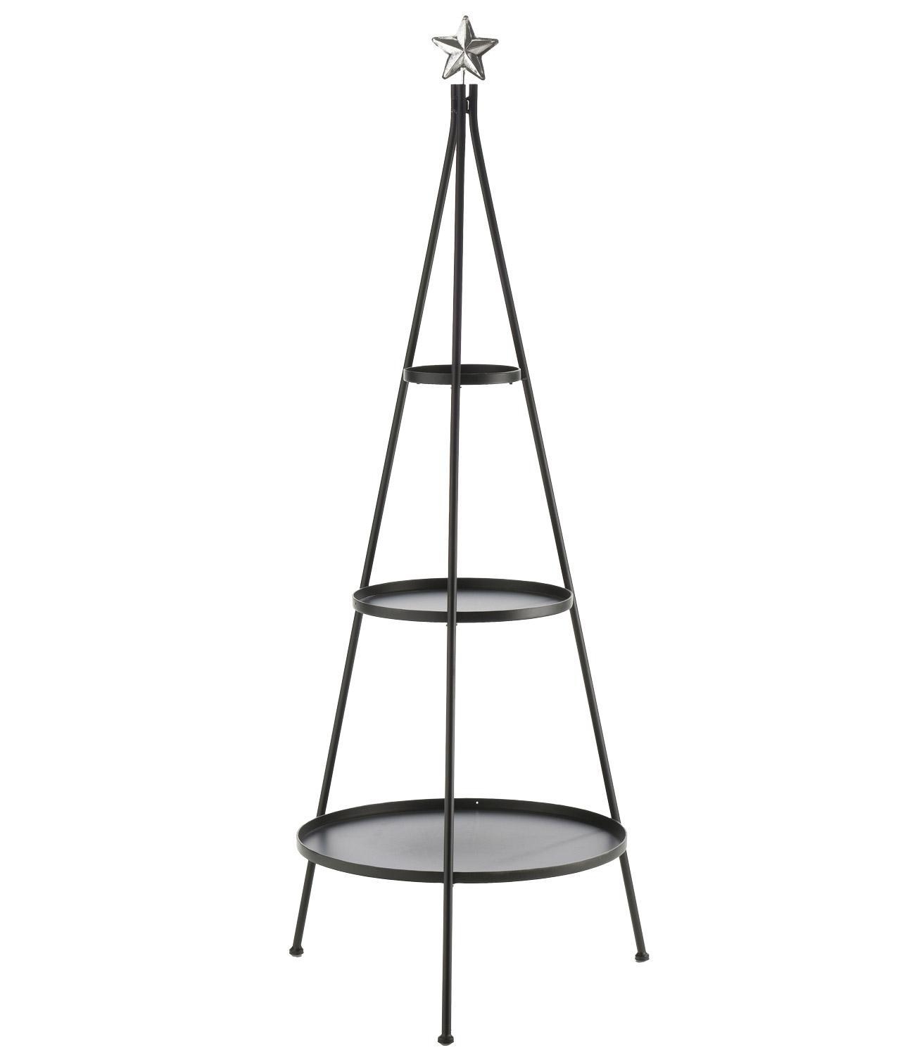 Die Etagere TRIST von casa NOVA ist 141 cm hoch und in stilvoller Kegelform gestaltet. Aus schwarzem Metall gefertigt und mit einem dekorativen Weihnachtsstern in Silbergrau verziert, bietet sie auf drei Etagen viel Platz für kreative Dekorationen. Ob für festliche Arrangements oder ganzjährige Akzente – diese elegante Etagere wird zum Blickfang in jedem Raum.