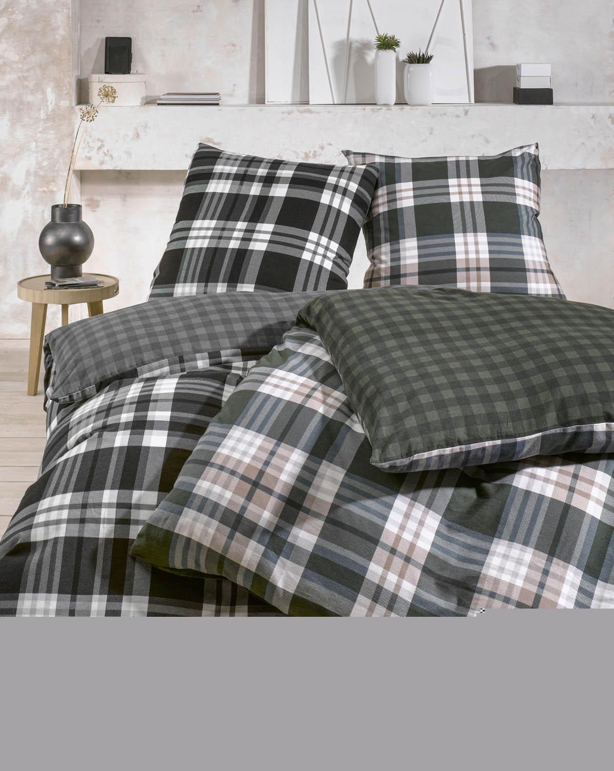 - Flanell-Wende-Bettwäsche in Schwarz, Anthrazit und Weiß