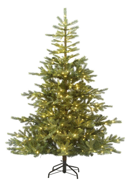 Der künstliche Tannenbaum GRANDIS von casa NOVA bringt weihnachtliche Stimmung ins Haus. Gefertigt aus grünem Kunststoff mit einem Standfuß aus Metall in schwarz, beeindruckt er durch seine Tannennadeln in Echtnadeloptik und die 400 warmweißen LEDs, die für stimmungsvolle Beleuchtung sorgen. Der Baum ist nadelfrei und muss nicht gegossen werden, was ihn besonders pflegeleicht macht. Mit einem Durchmesser von 132 cm und einer Höhe von 180 cm bietet er eine imposante Erscheinung. Das 500 cm lange Kabel mit Fußschalter ermöglicht eine bequeme Bedienung. Die Micro-LEDs haben 8 Funktionen und sind in einem Abstand von je 25 cm angeordnet. Insgesamt verfügt der Baum über 56 Zweige. Der Anblick eines leuchtenden Christbaums sorgt jedes Jahr wieder für Freude.