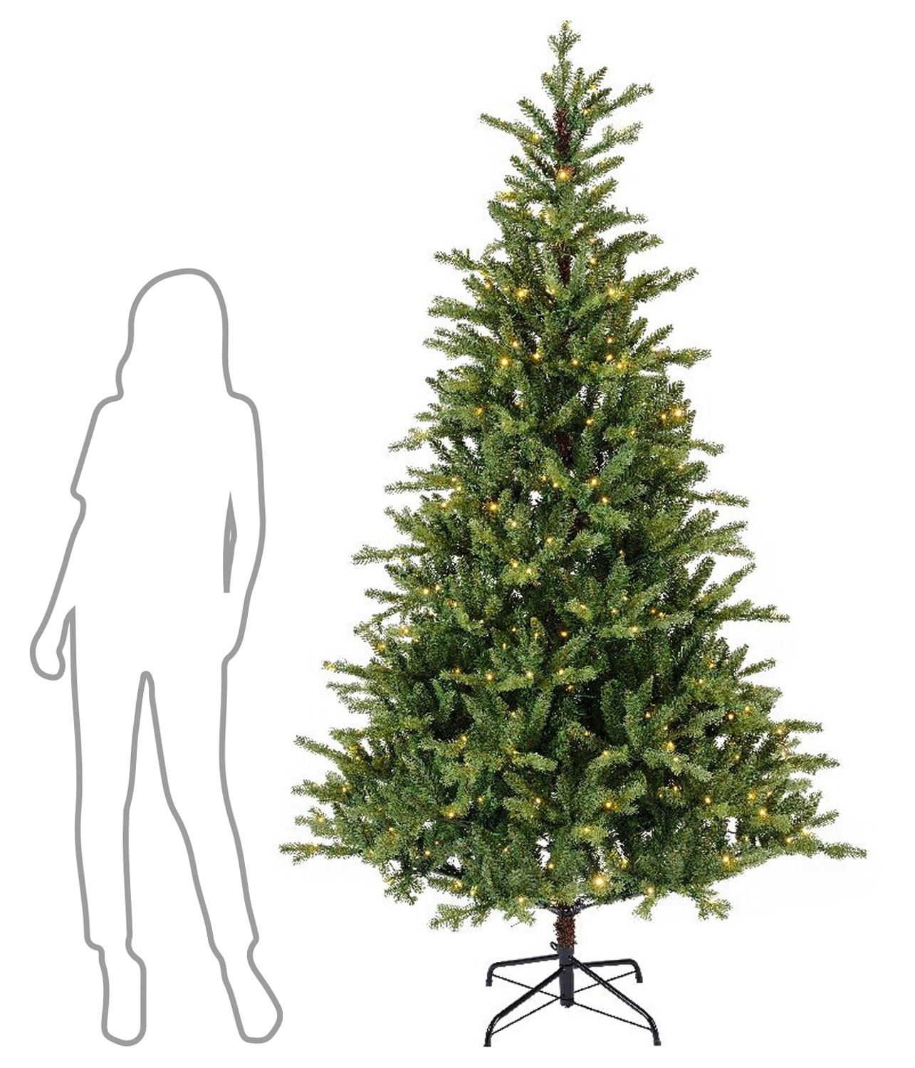 Der künstliche Tannenbaum ALLISON von casa NOVA bringt weihnachtliche Stimmung ins Haus. Gefertigt aus grünem Kunststoff mit einem Standfuß aus Metall in schwarz, beeindruckt er durch seine Tannennadeln in Echtnadeloptik und die 430 LEDs, die für stimmungsvolle Beleuchtung sorgen. Der Baum ist nadelfrei und muss nicht gegossen werden, was ihn besonders pflegeleicht macht. Mit einer Höhe von 210 cm und einem Durchmesser von 127 cm bietet er eine imposante Erscheinung. Das 500 cm lange Kabel in grün mit Fußschalter ermöglicht eine bequeme Bedienung. Die Micro-LEDs haben 8 Funktionen und sind in einem Abstand von je 23 cm angeordnet. Insgesamt verfügt der Baum über 1778 Spitzen und 54 Zweige.