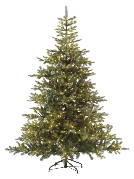 Der künstliche Tannenbaum GRANDIS von casa NOVA bringt weihnachtliche Stimmung ins Haus. Gefertigt aus grünem Kunststoff mit einem Standfuß aus Metall in schwarz, beeindruckt er durch seine Tannennadeln in Echtnadeloptik und die 550 warmweißen LEDs, die für stimmungsvolle Beleuchtung sorgen. Der Baum ist nadelfrei und muss nicht gegossen werden, was ihn besonders pflegeleicht macht. Mit einem Durchmesser von 150 cm und einer Höhe von 210 cm bietet er eine imposante Erscheinung. Das 500 cm lange Kabel mit Fußschalter ermöglicht eine bequeme Bedienung. Die Micro-LEDs haben 8 Funktionen und sind in einem Abstand von je 25 cm angeordnet. Insgesamt verfügt der Baum über 82 Zweige. Ein Christbaum bringt in jeder Umgebung eine besondere, festliche Stimmung.