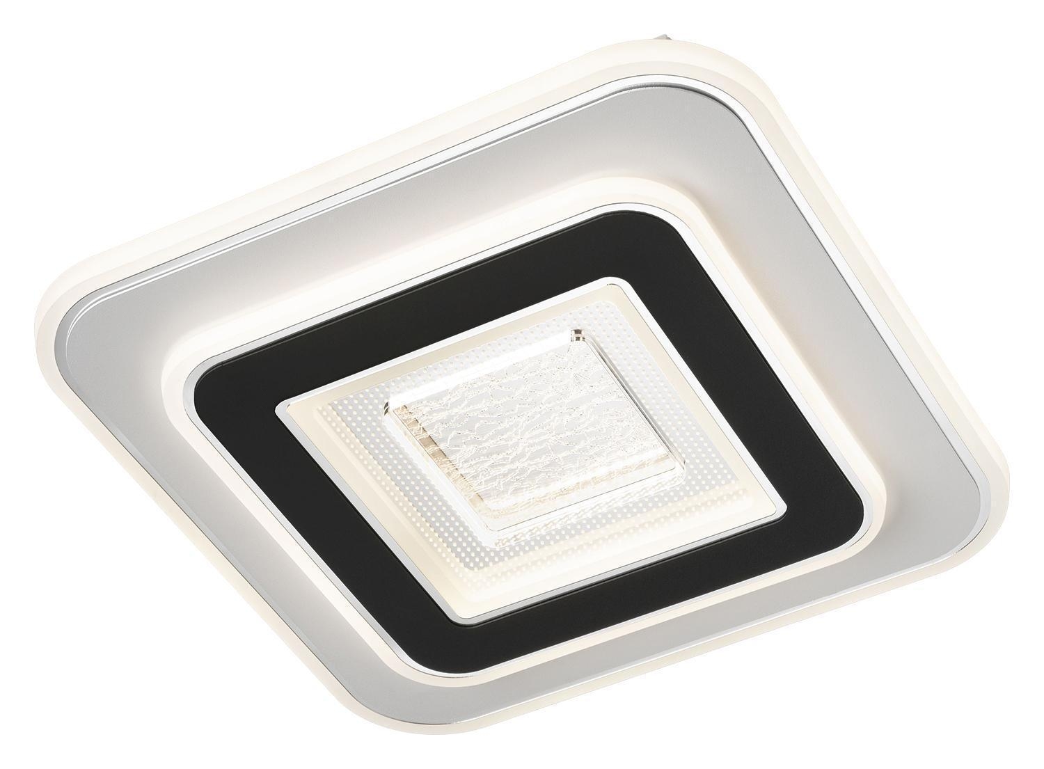 Die LED-Deckenleuchte JOYCE der Marke casa NOVA besteht aus Acryl und Metall in den Farben Schwarz und Weiß. Sie hat eine Breite von 35 cm, eine Höhe von 4,5 cm und eine Tiefe von 33 cm. Im Lieferumfang ist ein fest verbautes LED-Leuchtmittel enthalten, das nicht austauschbar ist. Dieses bietet eine Leistung von 18 Watt, eine warmweiße Lichtfarbe mit 3000 Kelvin und eine Helligkeit von 2100 Lumen.