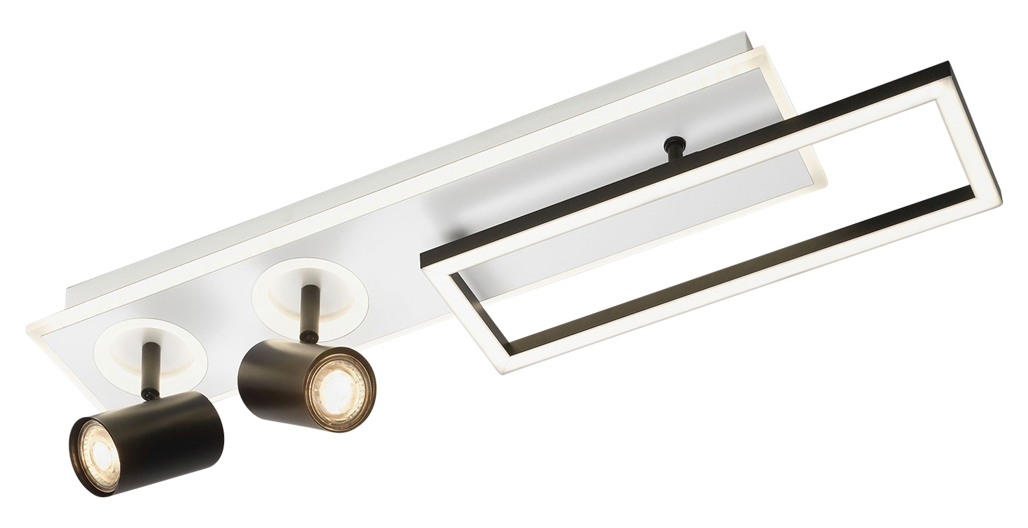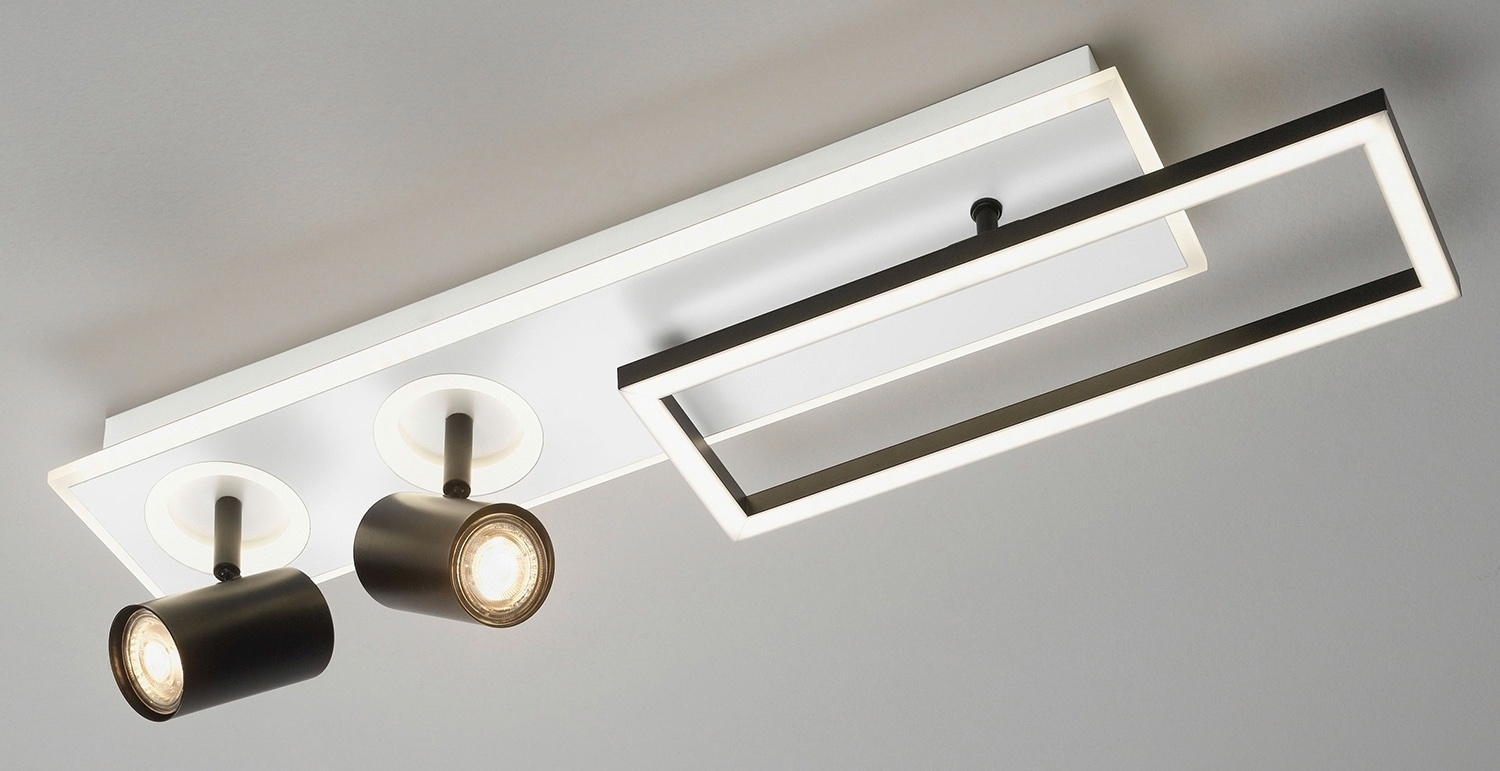 Die 2 schwenkbaren Spots benötigen 2x GU10 Leuchtmittel die nicht im Lieferumfang enthalten sind. Beide GU10-Leuchtmittel sind austauschbar. 2 eckige Leuchtrahmen mit LED-Platinen sind nicht austauschbar.