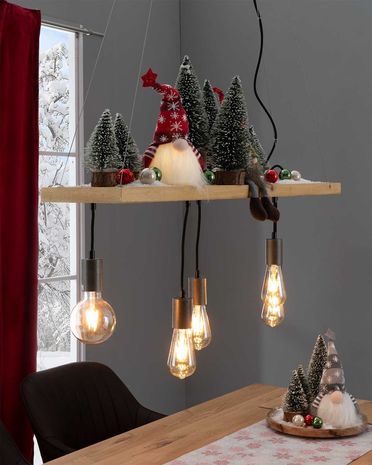 Schwarz - Metall - Fichtenholz - 100 x 150 cm - 5-flammig