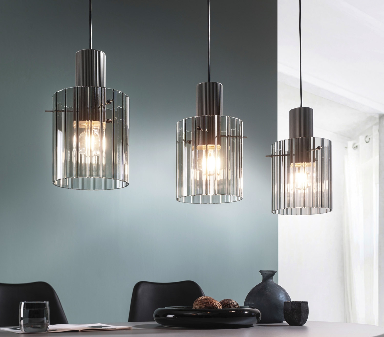 Die Pendelleuchte RONJA von casa NOVA vereint Eleganz und Funktionalität. Ihr Gestell besteht aus Aluminium und die Lampenschirme aus Rauchglas, was für ein ansprechendes Design sorgt. Mit einer Breite von 90 cm, einer Höhe von 150 cm und einer Tiefe von 18 cm ist sie ein Blickfang in jedem Raum. Die Leuchte bietet Platz für 3 Leuchtmittel vom Typ E27, die jedoch nicht im Lieferumfang enthalten sind. Sie können jedoch problemlos ausgetauscht werden, um das Licht nach Ihren Vorlieben anzupassen.