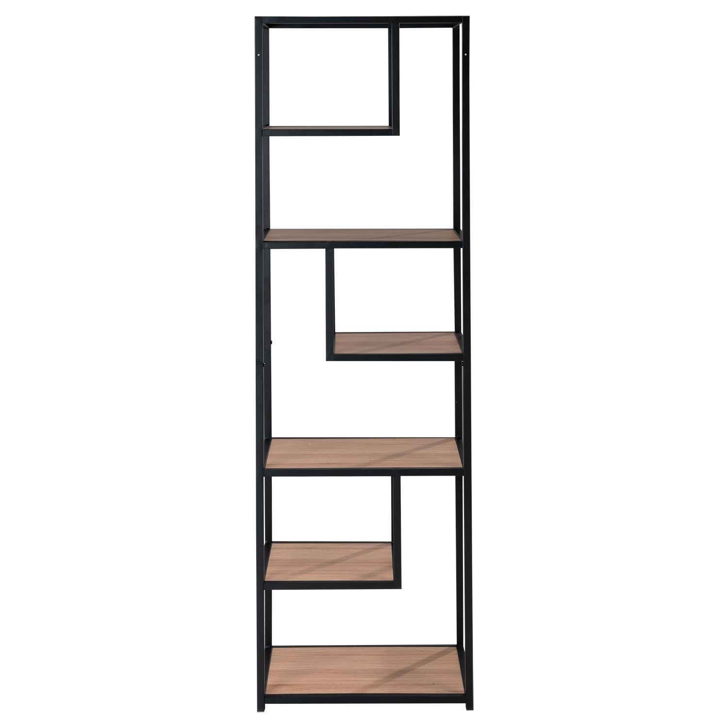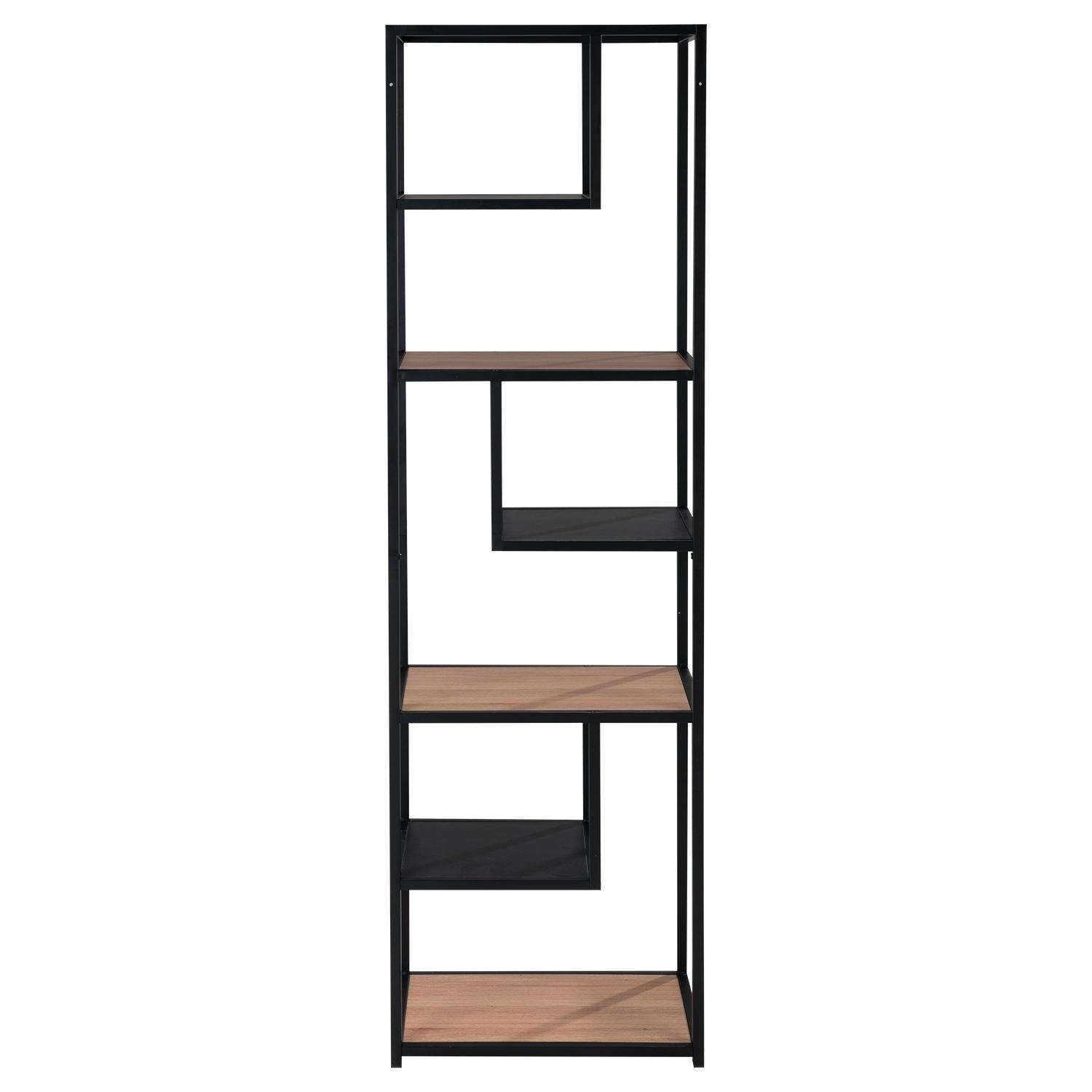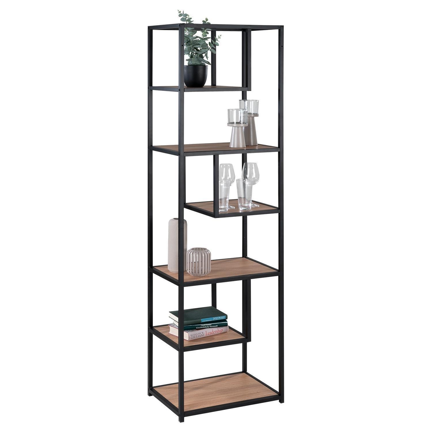 Das Regal RAMON der Marke casa NOVA besteht aus Metall in Schwarz. Es ist mit sechs offenen Fächern ausgestattet. Die Böden sind in Eiche Dekor und Schwarz gehalten und lassen sich wenden. Das Regal bietet viel Stauraum. Die Maße betragen 50 cm in der Breite, 180 cm in der Höhe und 34 cm in der Tiefe.