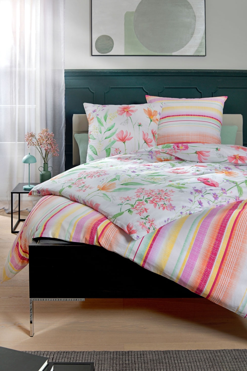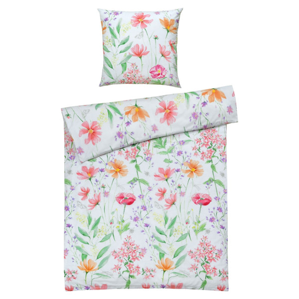 - Renforce-Bettwäsche in weiß mit bunten Blumen