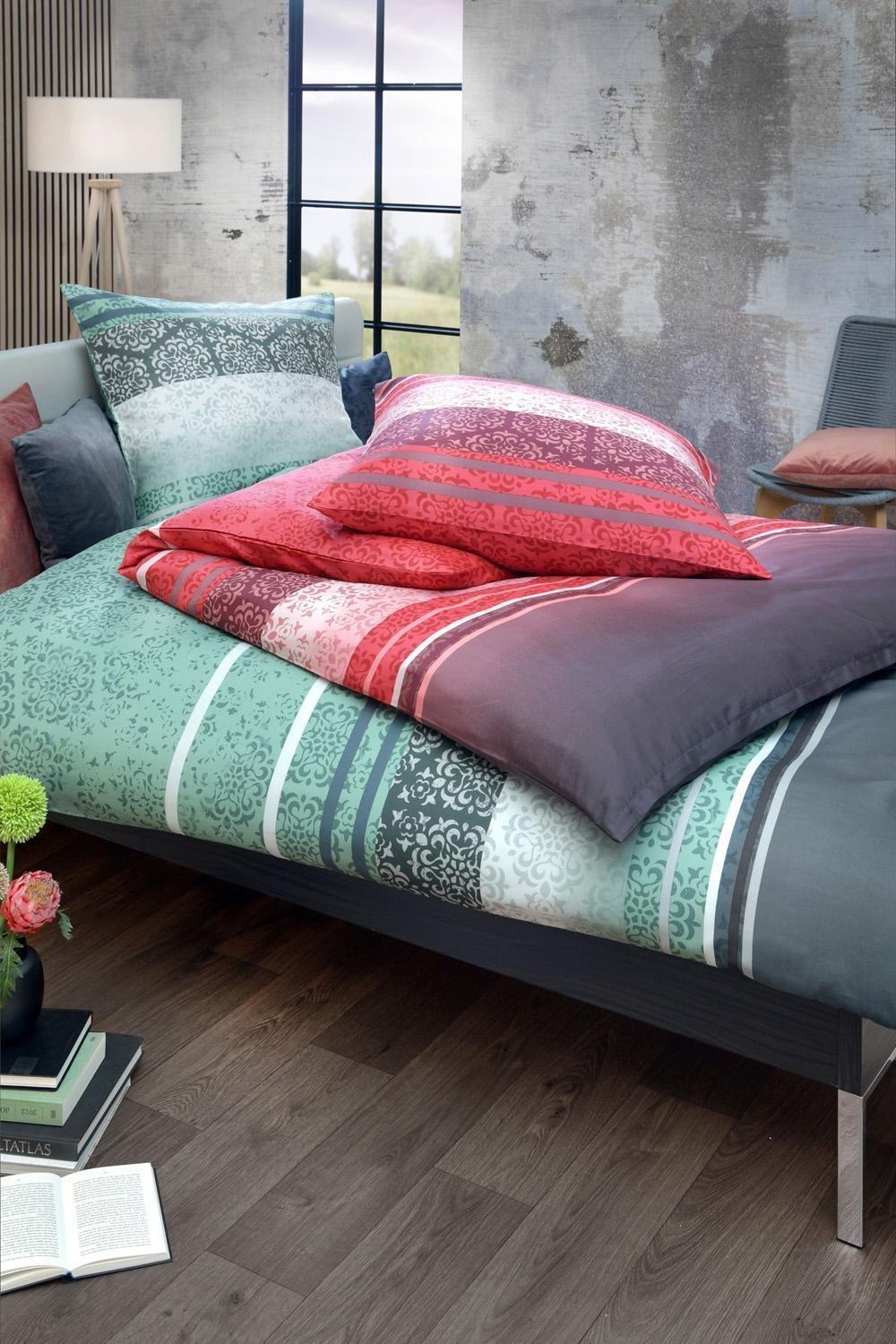 - Satin-Bettwäsche in Rot, Weiß und Grau