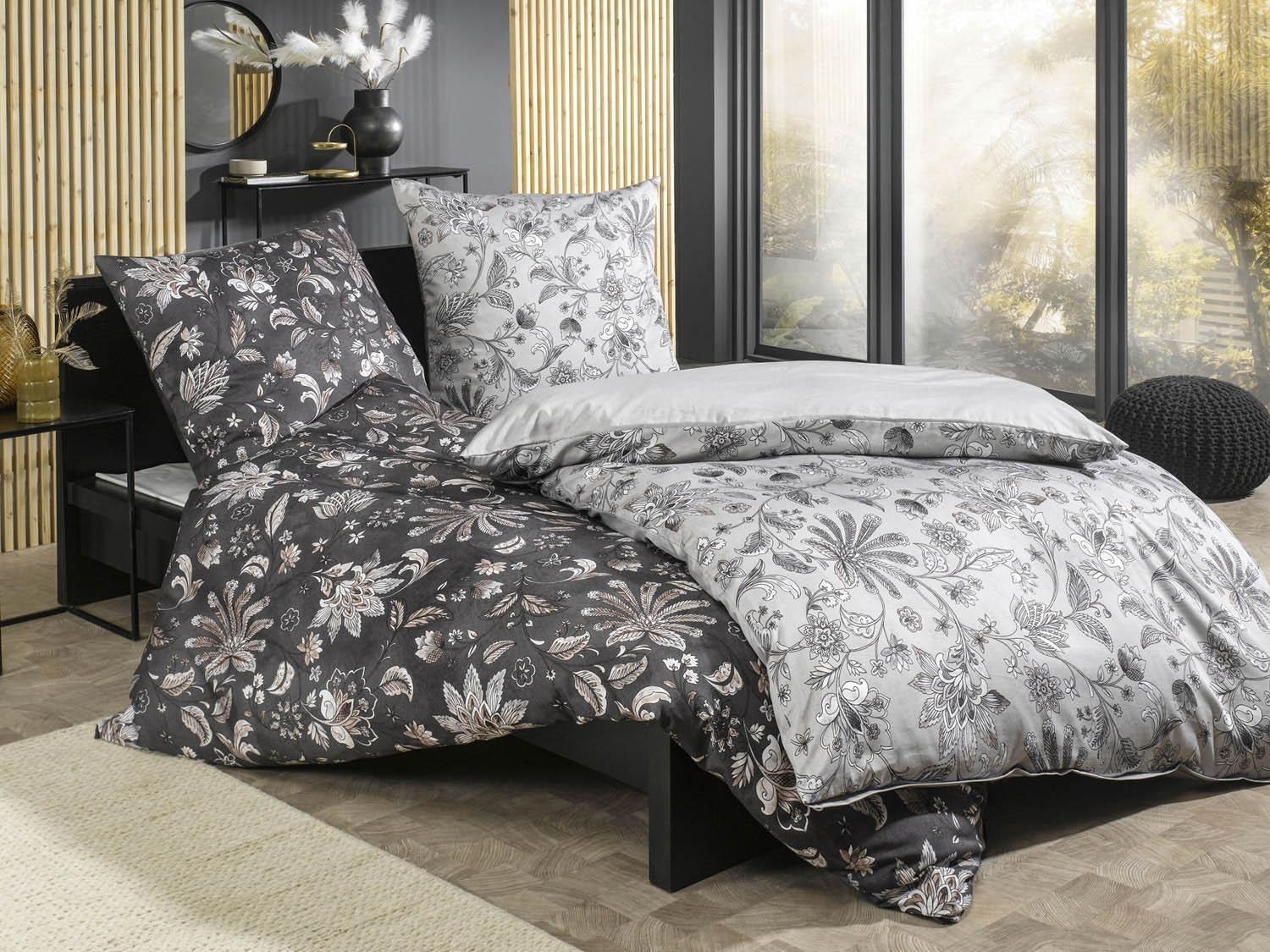 Die Satin-Bettwäsche TABEA von casa NOVA vereint Eleganz und Funktionalität. Aus Baumwolle in stilvollem Grau gefertigt, schmückt sie sich mit floralem Muster. Der Bettbezug misst 135 x 200 cm und der Kissenbezug 80 x 80 cm. Beide sind mit Reißverschlüssen ausgestattet, was das Beziehen erleichtert. Zudem ist die Bettwäsche bis 60 °C waschbar und trocknergeeignet.