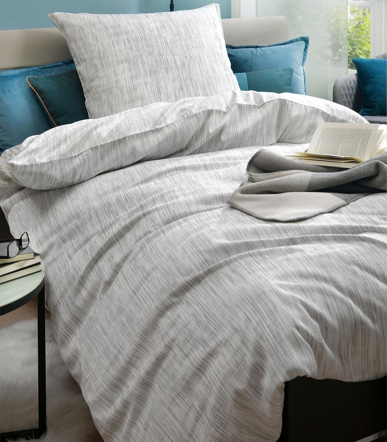 155 x 220 cm - Weiß - Grau - Baumwolle - mit Reißverschluss