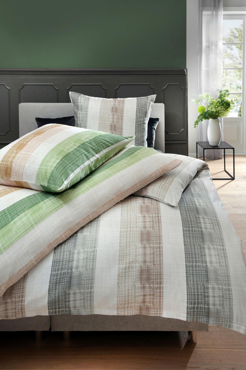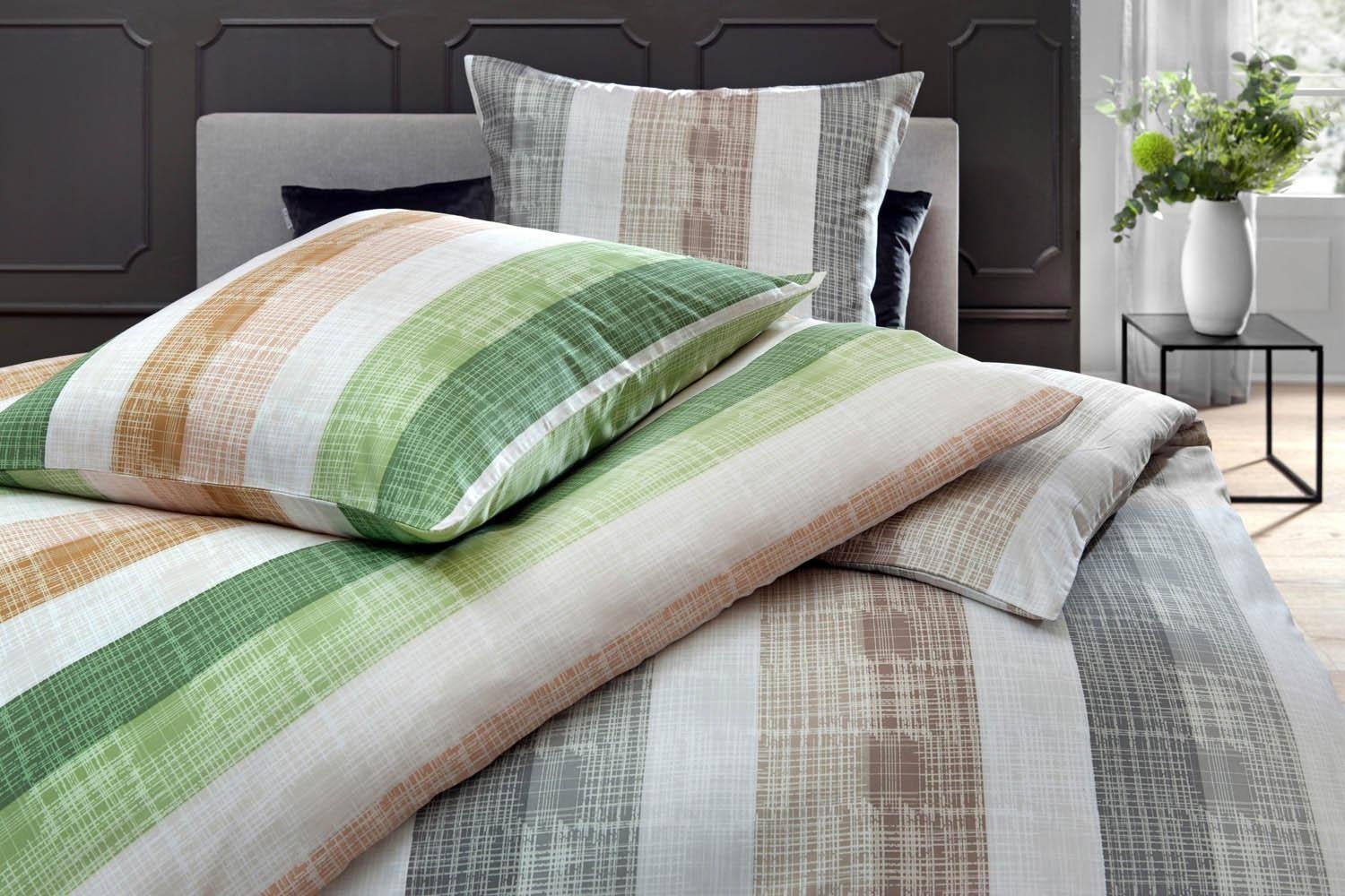 - Satin-Bettwäsche in Grau, Weiß und Braun