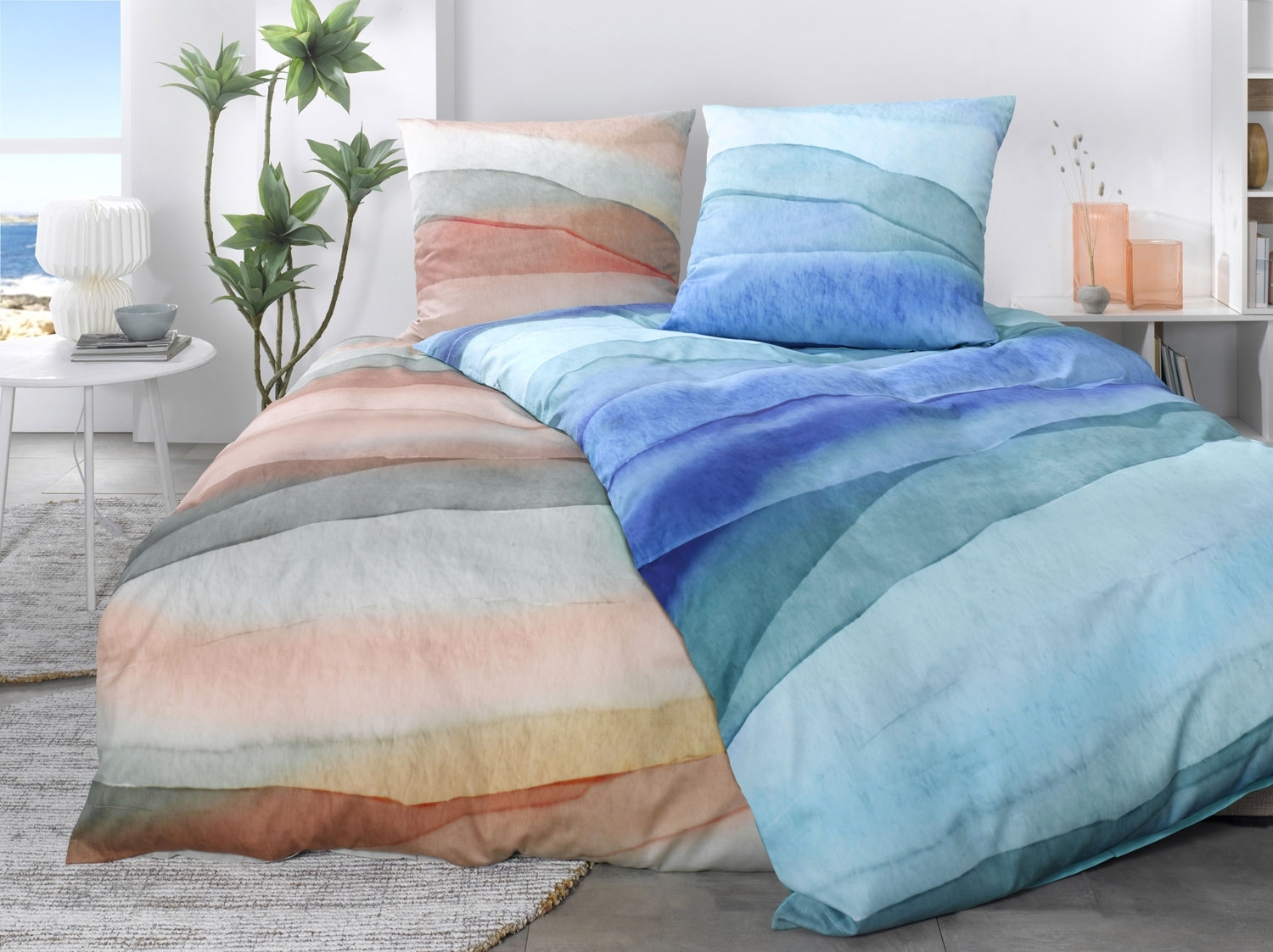 - Satin-Wende-Bettwäsche in orange, sandfarben und türkis
