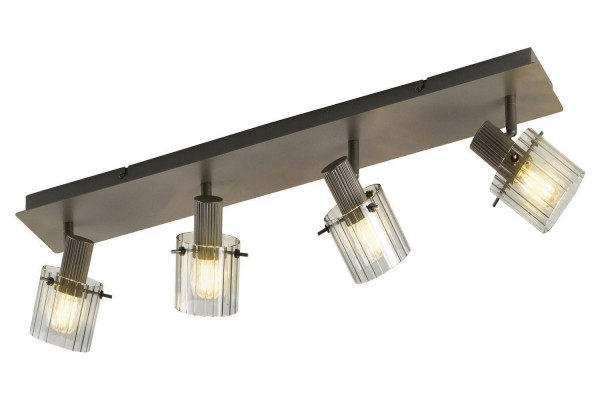 Der Strahler RONJA von casa NOVA ist ein stilvoller 4er-Spot, der mit einer Deckenhalterung aus grauem Metall überzeugt. Die verstellbaren Lampenschirme aus Rauchglas ermöglichen eine flexible Ausleuchtung des Raums. Der Strahler ist für vier E14-Leuchtmittel geeignet, die nicht im Lieferumfang enthalten sind, aber austauschbar sind. Die maximale Leistung der Leuchtmittel beträgt 40 Watt. Mit einer Breite von 70,2 cm, einer Höhe von 16,5 cm und einer Tiefe von 13,8 cm fügt sich der Strahler harmonisch in verschiedene Wohnbereiche ein. Auch als Wandleuchte verwendbar.