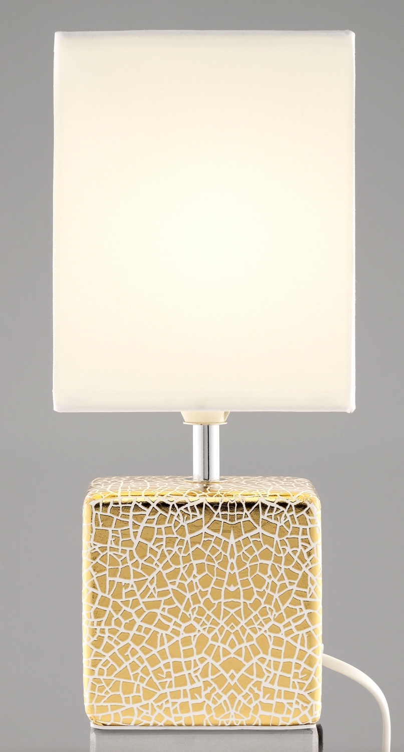 Goldgelb - Weiß - H 30 cm - Stoffschirm - Keramik