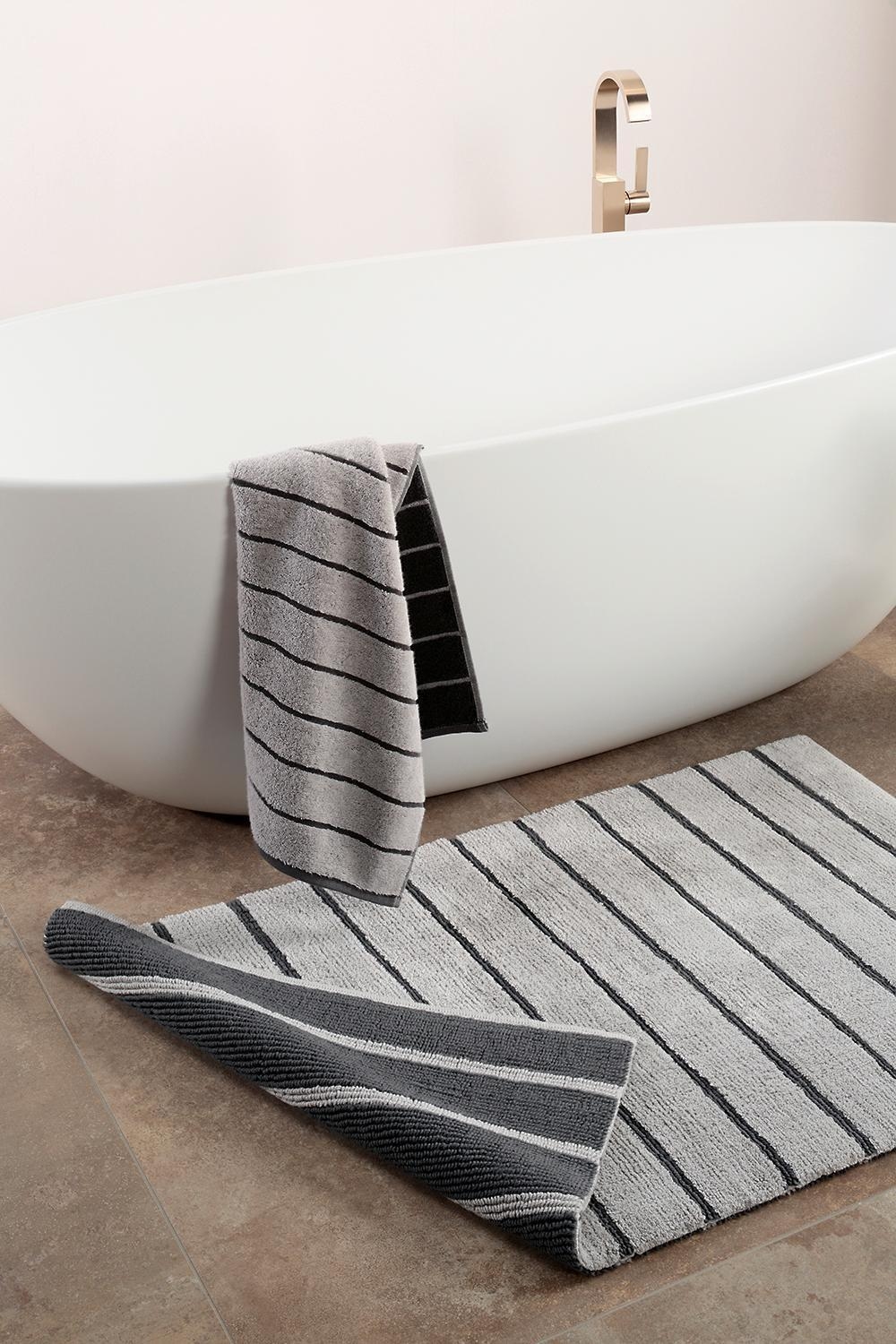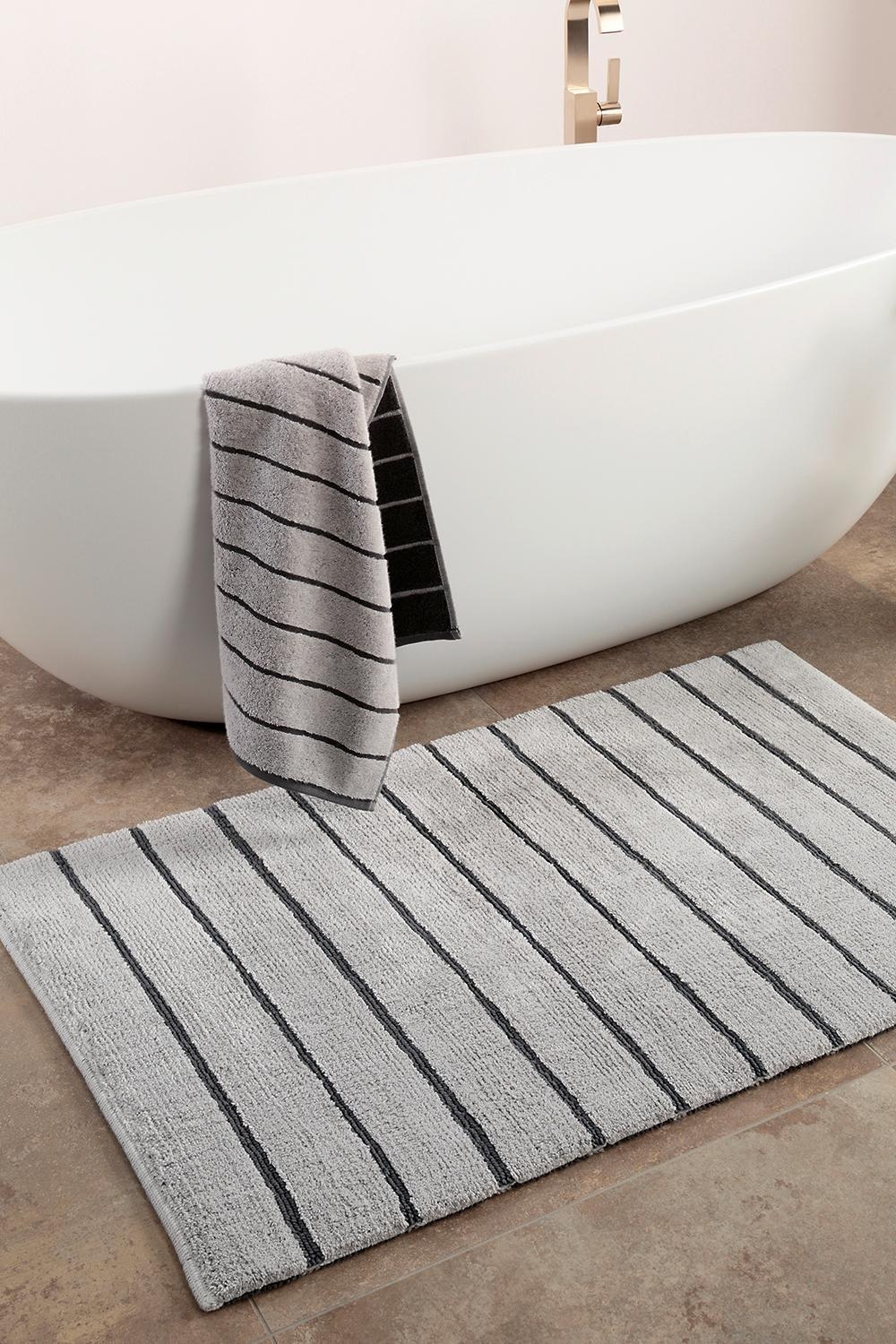 Die handgewebte Badematte BALANCE von Cawö vereint stilvolles Design mit hoher Funktionalität. Das weiche Material aus 100 % Baumwolle sorgt für ein angenehmes Laufgefühl, während das dezente Streifenmuster in Plantinfarben und Grau für eine zeitlose Optik sorgt. Mit einer Größe von 70 x 120 cm ist sie ideal für das Badezimmer geeignet. Die Matte ist für Fußbodenheizungen geeignet, bei 60 °C waschbar und trocknergeeignet.