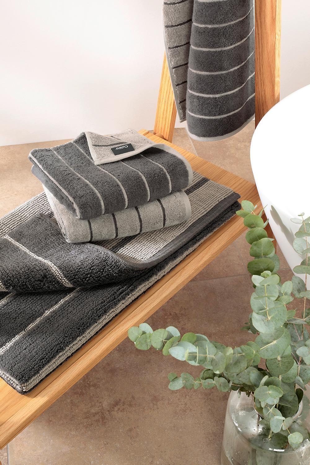 Das Duschtuch BALANCE von Cawö überzeugt mit seinem stilvollen Streifenmuster in Anthrazit und Grau. Es besteht aus 100 % Baumwolle und bietet mit einer Größe von 80 x 150 cm hohen Komfort. Dank der praktischen Schlaufe lässt es sich einfach aufhängen. Das hochwertige Material ist besonders saugfähig, pflegeleicht und bei 60 °C waschbar. Zudem ist das Duschtuch trocknergeeignet und Made in Germany.