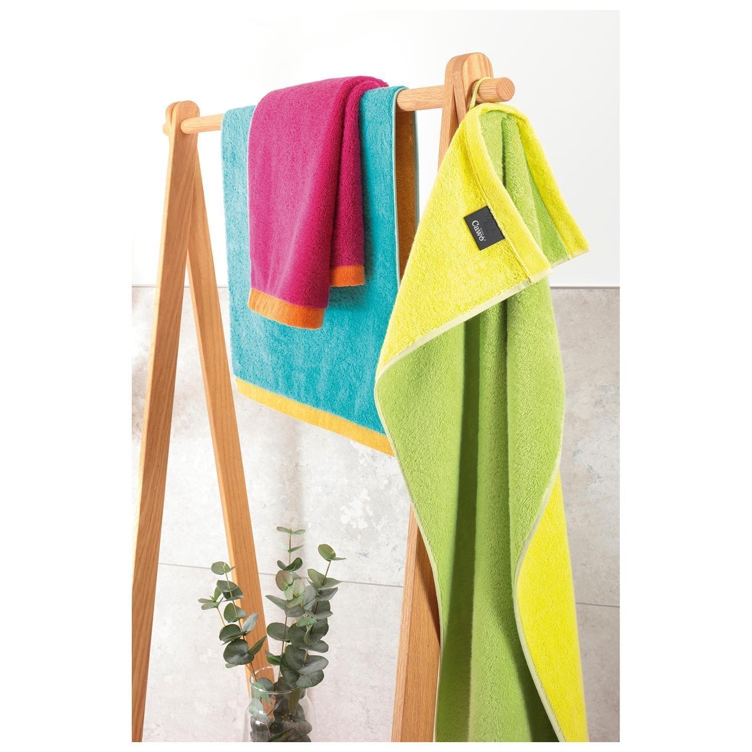 Das Duschtuch LIFESTYLE SPLASH von Cawö ist auf der Vorderseite Grün und auf der Rückseite Gelb. Es besteht aus 100 % Baumwolle und bietet mit einer Größe von 70 x 140 cm hohen Komfort. Dank der praktischen Schlaufe lässt es sich einfach aufhängen. Das hochwertige Material ist besonders saugfähig, pflegeleicht und bei 60 °C waschbar. Zudem ist das Duschtuch trocknergeeignet und Made in Germany.