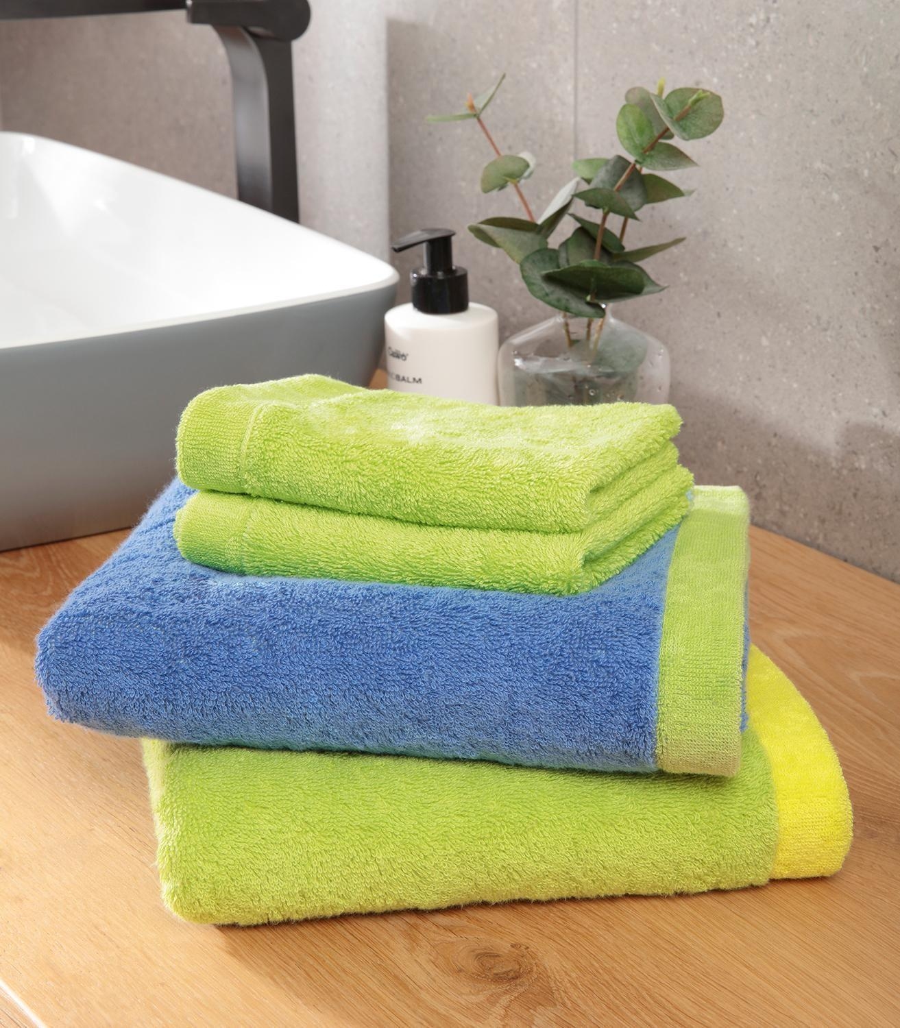 Das Handtuch LIFESTYLE SPLASH von Cawö ist auf der Vorderseite Grün und auf der Rückseite Gelb. Es besteht aus 100 % Baumwolle und bietet mit einer Größe von 50 x 100 cm hohen Komfort. Dank der praktischen Schlaufe lässt es sich einfach aufhängen. Das hochwertige Material ist besonders saugfähig, pflegeleicht und bei 60 °C waschbar. Zudem ist das Duschtuch trocknergeeignet und Made in Germany.