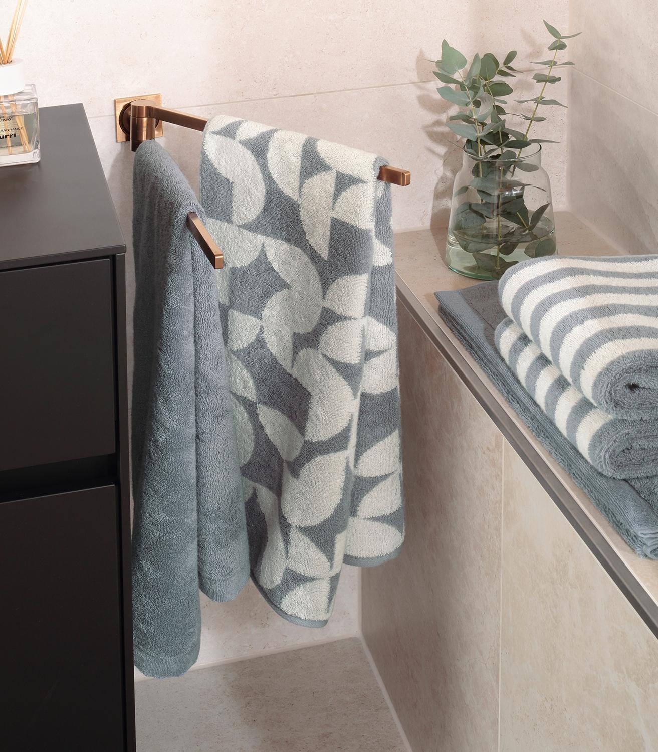 Das Handtuch STUDIO GRAPHIC von Cawö überzeugt mit seinem grafischen Muster in Blau und Weiß. Mit einer Größe von 50 x 100 cm bietet es ausreichend Fläche zum Abtrocknen und Wohlfühlen. Gefertigt aus 100 % Baumwolle, ist es besonders weich, saugfähig und hautfreundlich. Eine praktische Aufhängeschlaufe an der schmalen Seite sorgt für Ordnung im Bad. Das Tuch ist waschbar bis 60 °C, trocknergeeignet und wird in Deutschland gefertigt – ideal für stilvolle Badezimmer mit Qualitätsanspruch.