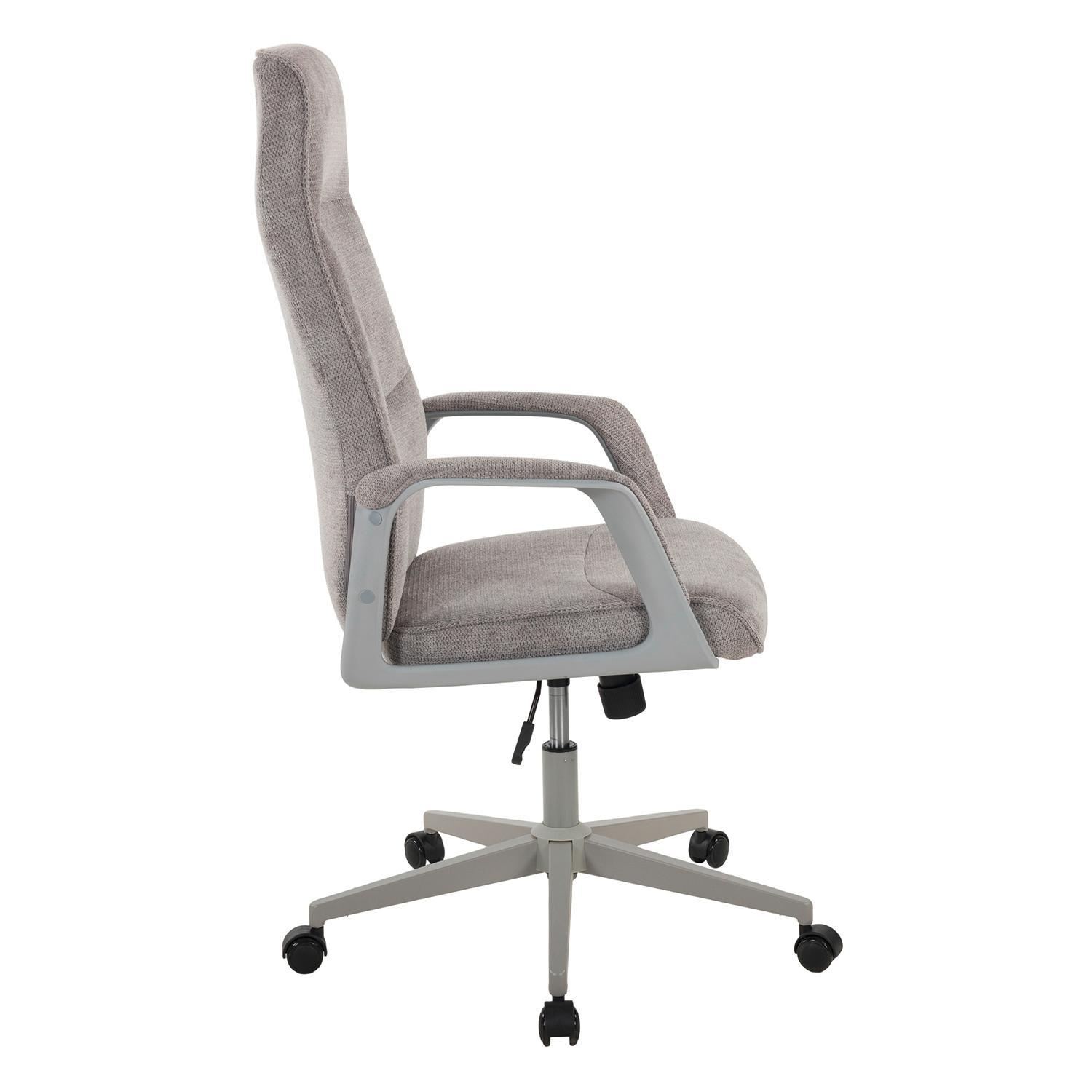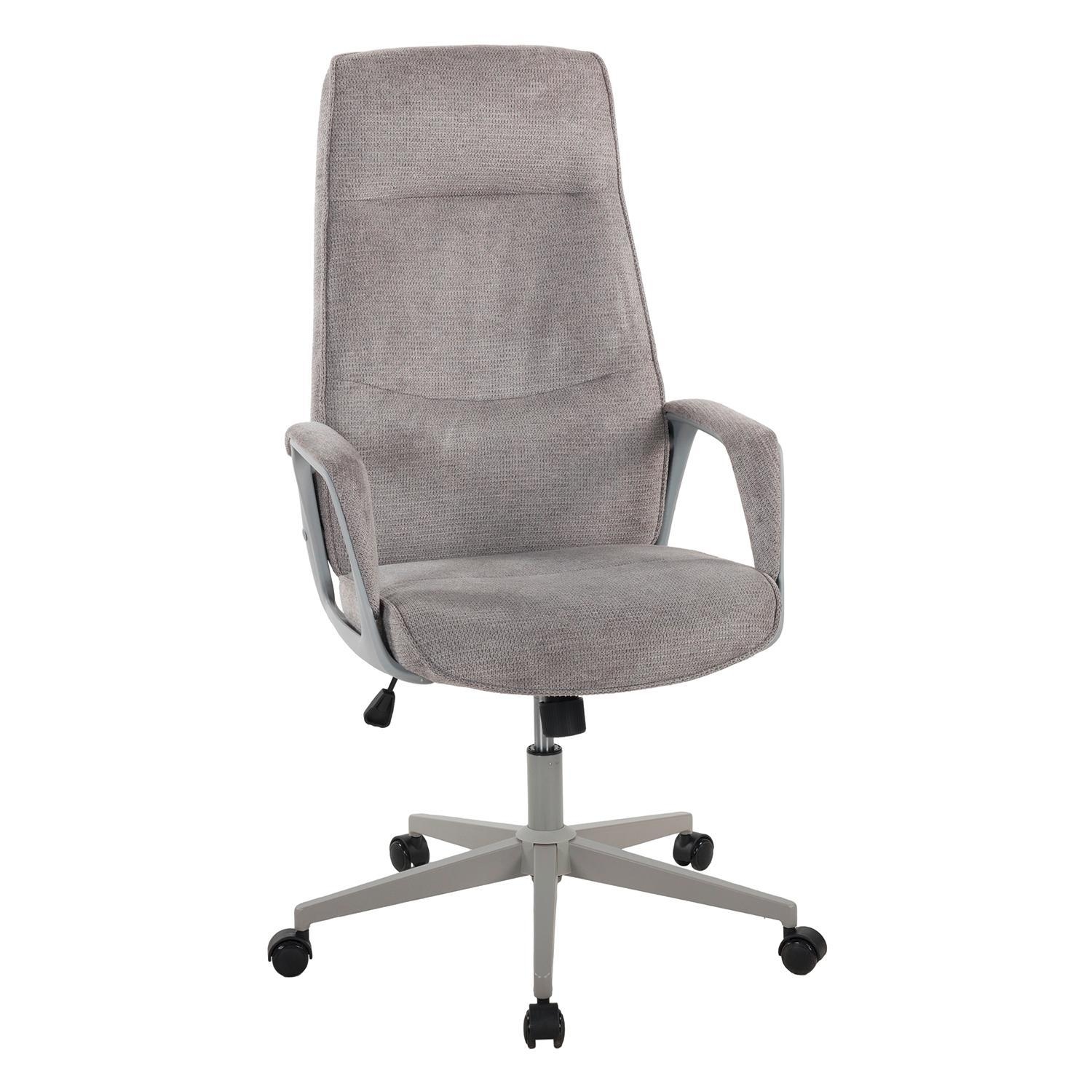 Der Chefsessel MANTERA ist mit einem grauen Webstoffbezug ausgestattet und verfügt über ein Gestell aus Metall, das in Grau gehalten ist. Die Sitzhöhe lässt sich durch eine Sicherheitsgasdruckfeder stufenlos zwischen 50 und 60 cm verstellen. Eine Wippmechanik mit Härtegradeinstellung ermöglicht eine individuelle Anpassung der Beweglichkeit. Für zusätzlichen Komfort sind die Armlehnen gepolstert, die Rückenlehne verfügt über eine zusätzliche Rückenunterstützung im Lordosenbereich und die Sitzfläche verfügt zusätzlich über eine Taschenfederkernpolsterung. Der Stuhl ist bis zu einem Gewicht von maximal 110 kg belastbar und mit Sicherheitsdoppelrollen ausgestattet, die für festen Bodenbelag geeignet sind. Die empfohlene tägliche Nutzungsdauer beträgt sechs Stunden. Die Maße des Sessels betragen 64 cm in der 111 cm in der Höhe und 64 cm in der Tiefe, während die Sitzbreite 49 cm und die Sitztiefe 46 cm misst.