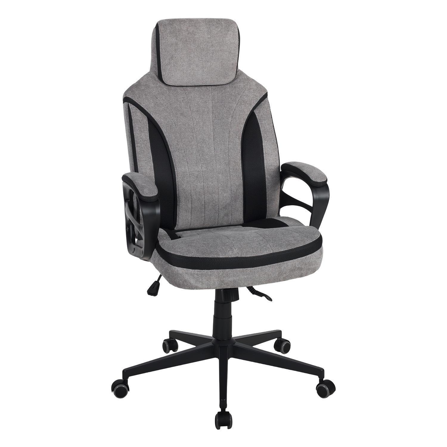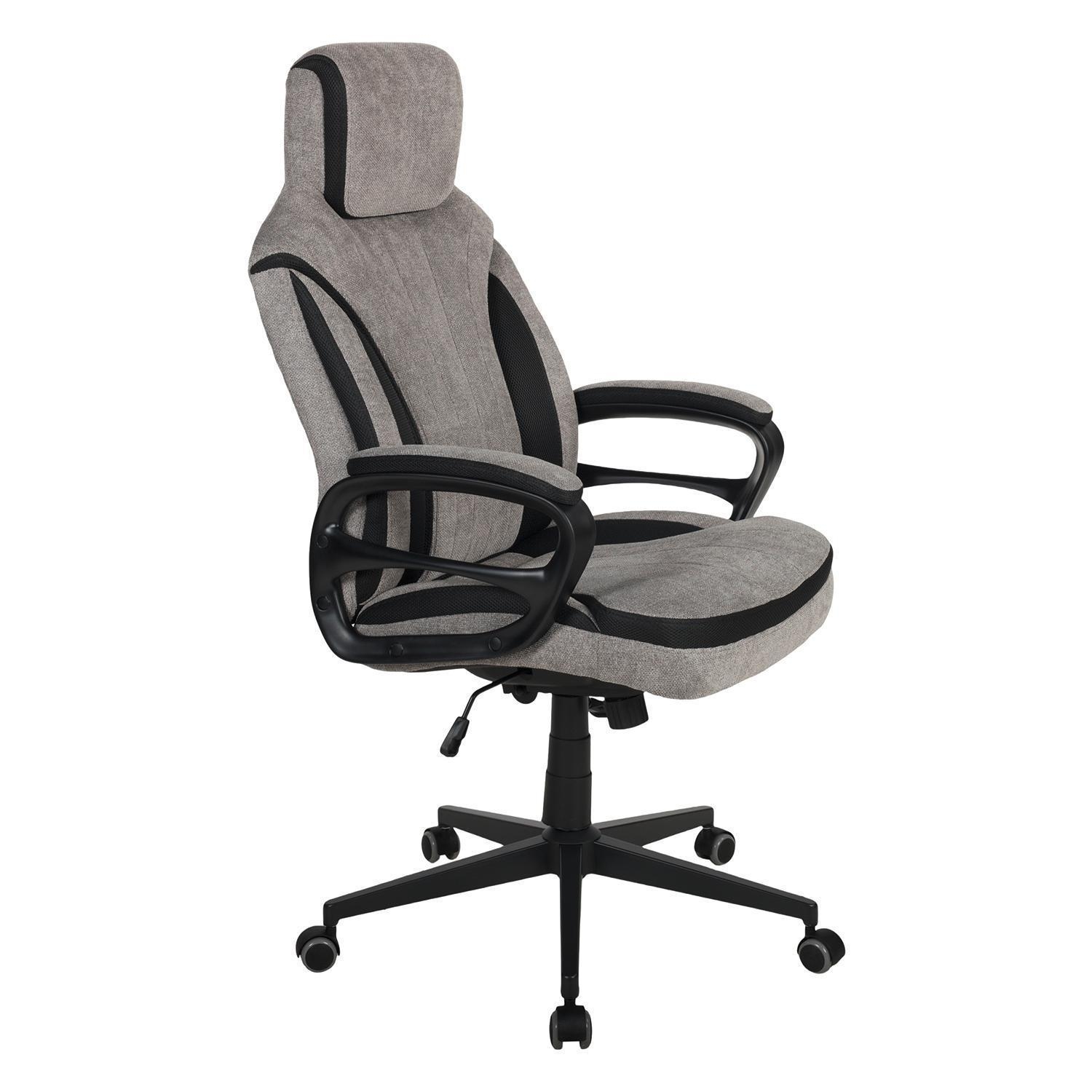 Der Chefsessel SANTERA ist mit einem grauen Webstoffbezug ausgestattet und Teile der Rückenlehne bestehen aus Netzstoff in Schwarz. Der Bürostuhl verfügt über ein Gestell aus Kunststoff und Metall, das in Schwarz gehalten ist. Die Rückenlehne hat eine zusätzliche Unterstützung für den Rücken integriert und erhöht so den Sitzkomfort. Die Sitzhöhe lässt sich durch eine Sicherheitsgasdruckfeder stufenlos zwischen 50 und 58 cm verstellen. Eine Wippmechanik mit Härtegradeinstellung ermöglicht eine individuelle Anpassung der Beweglichkeit. Für zusätzlichen Komfort sind die Armlehnen mit einer gepolsterten Auflage versehen. Der Stuhl ist bis zu einem Gewicht von maximal 110 kg belastbar und mit Sicherheitsdoppelrollen ausgestattet, die für festen Bodenbelag geeignet sind. Die empfohlene tägliche Nutzungsdauer beträgt sechs Stunden. Die Maße des Sessels betragen 66 cm in der Breite, 117 cm in der Höhe und 66 cm in der Tiefe, während die Sitzbreite 51 cm und die Sitztiefe 49 cm misst.