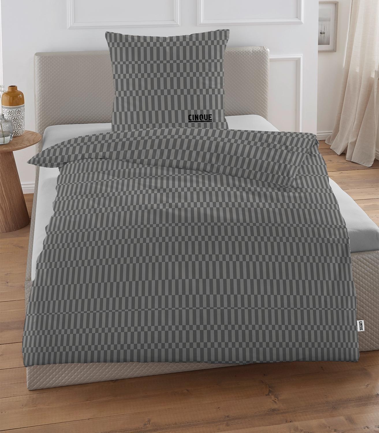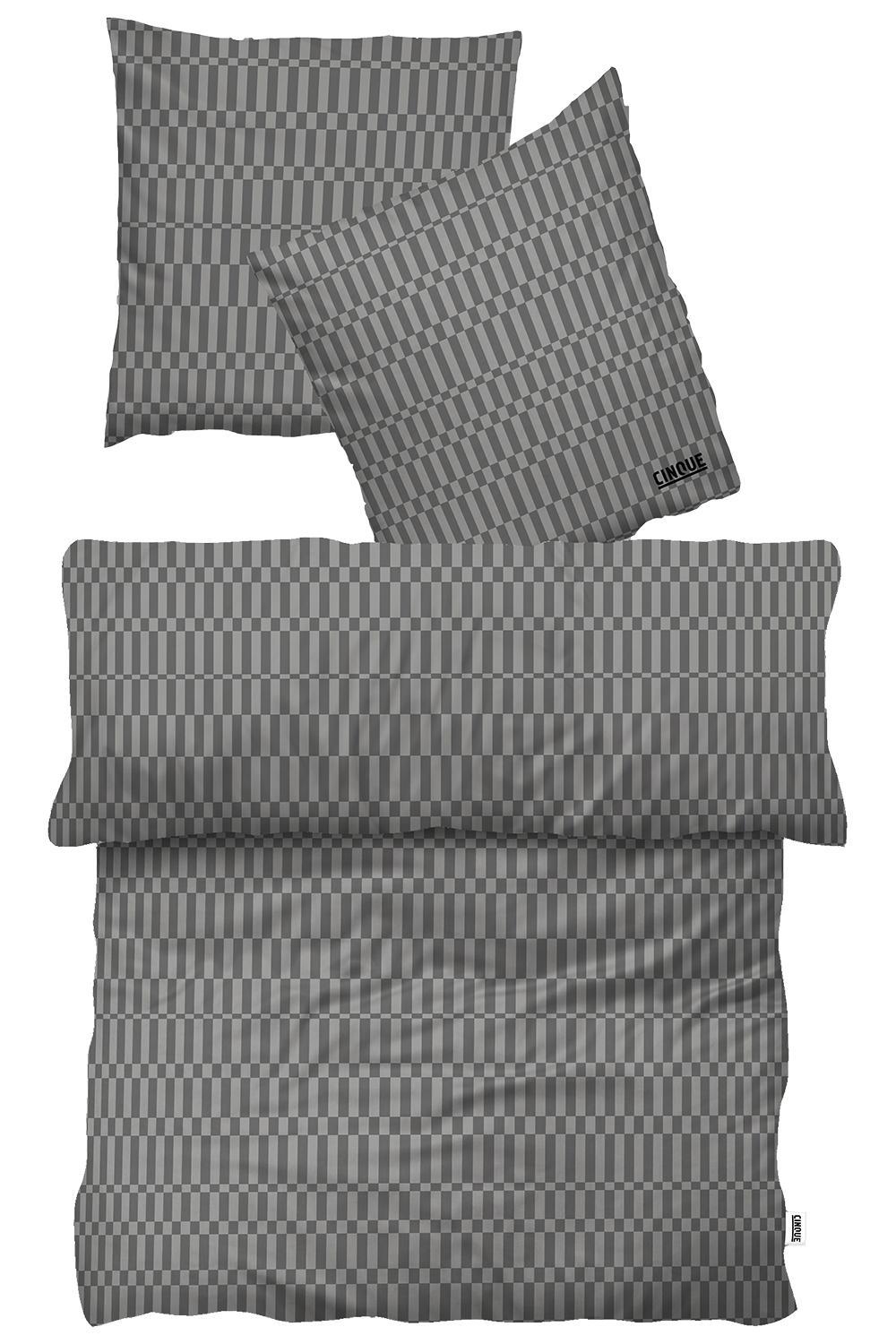 Die grau gemusterte Satin-Bettwäsche LINE von der Marke Cinque überzeugt mit stilvoller Optik und angenehmem Hautgefühl. Sie besteht aus 100 % Baumwolle in glatter Satinqualität und misst 200 x 200 cm – ideal für Doppelbetten. Dank praktischem Reißverschluss lässt sie sich schnell und einfach beziehen.