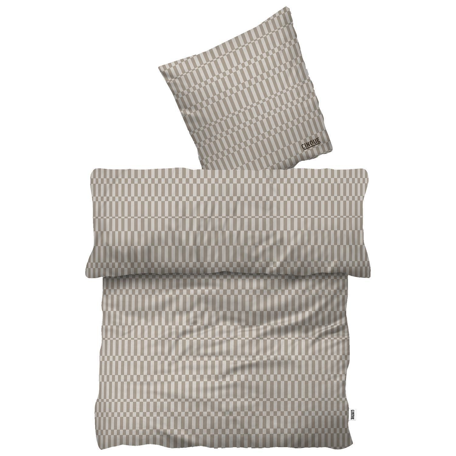 Die gemusterte Satin-Bettwäsche LINE von der Marke Cinque in Taupe überzeugt mit stilvoller Optik und angenehmem Hautgefühl. Sie besteht aus 100 % Baumwolle in glatter Satinqualität und misst 200 x 200 cm – ideal für Doppelbetten. Dank praktischem Reißverschluss lässt sie sich schnell und einfach beziehen.