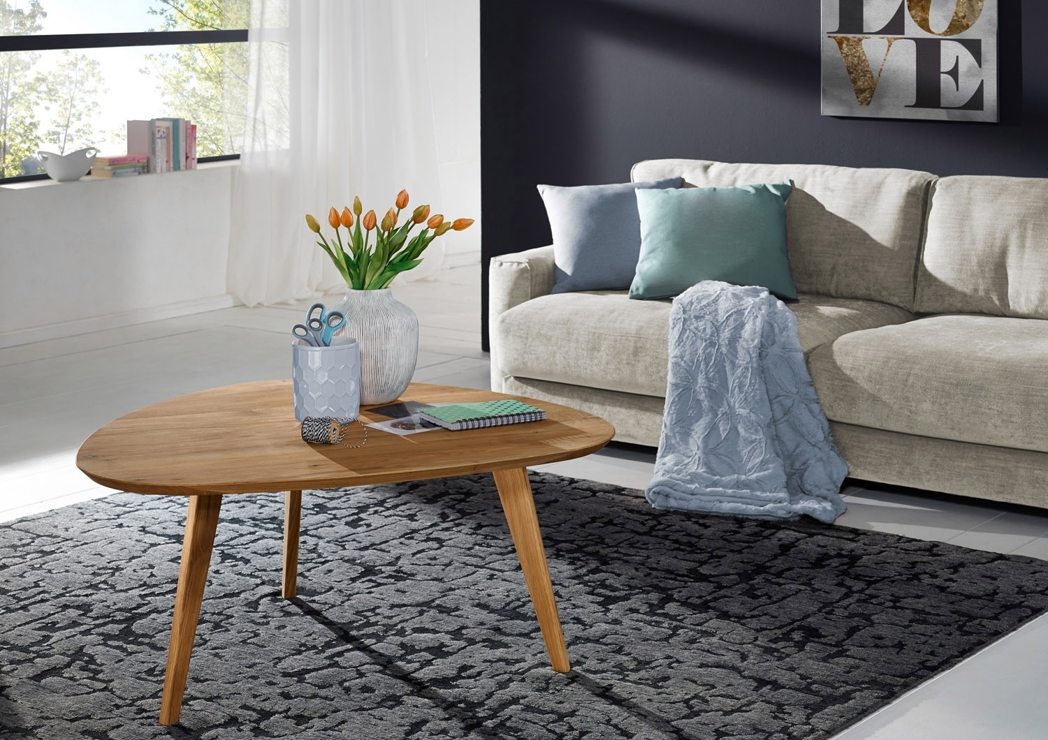 Der Couchtisch ODINO in Braun ist 104 cm breit, 47 cm hoch, 95 cm tief und besteht aus Wildeiche Massivholz. Sein Design, gepaart mit hohem Nutzwert, macht ihn zu einem vielseitigen Wohn-Accessoire.