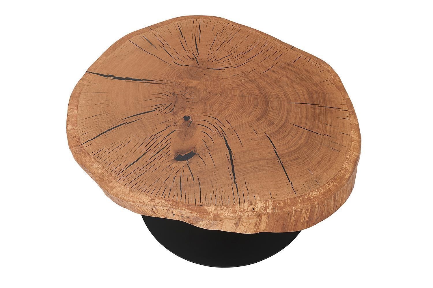 Da die Tischplatte als ganze Scheibe aus dem Baum herausgesägt wurde, kann es vorkommen, dass die abweichende Toleranz des Durchmessers an manchen Stellen bis zu 5 cm betragen kann.